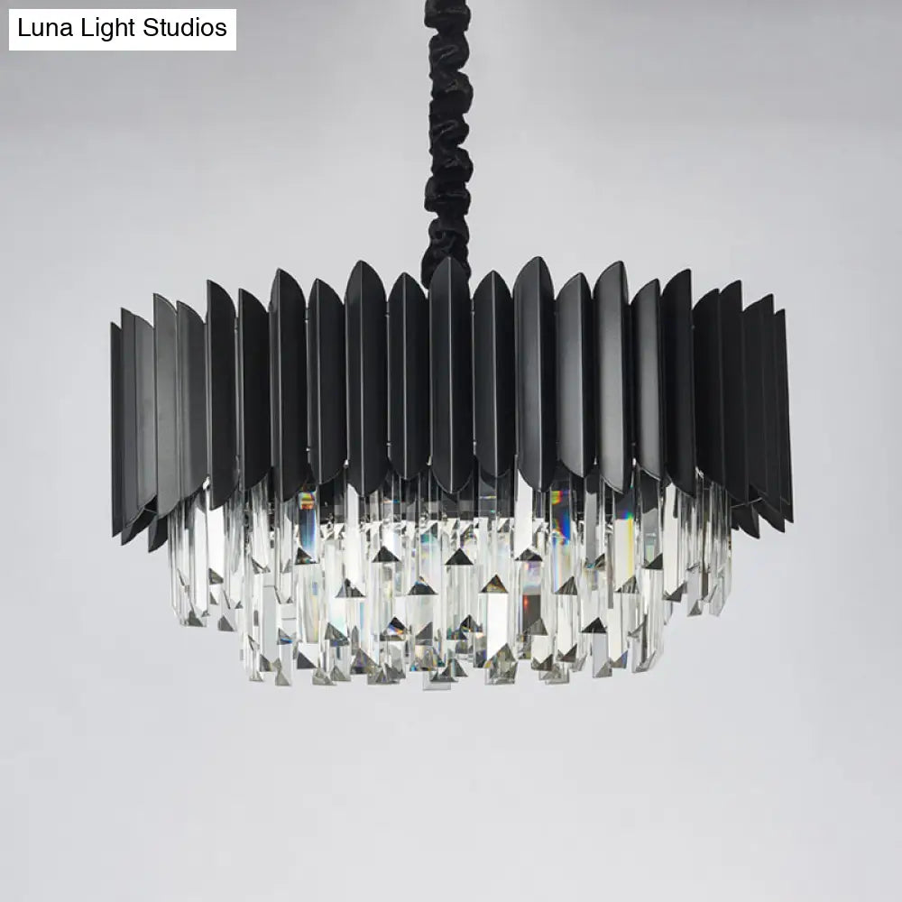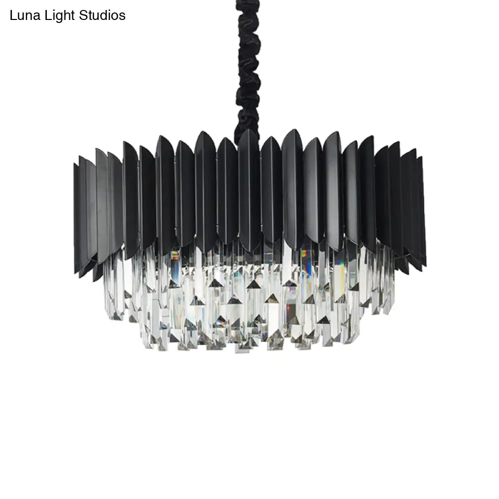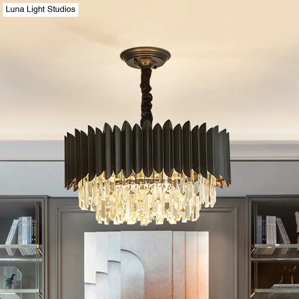 Lámpara de araña moderna con prismas de cristal en forma de tambor - Lámpara colgante negra de 4 bombillas para salón