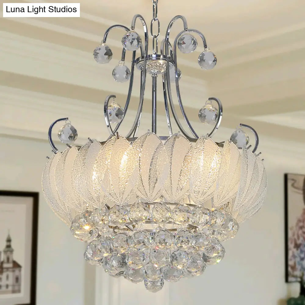 Lámpara de techo geométrica moderna con acabado cromado - Lámpara colgante de 4 bombillas, decoración de vidrio y cristal