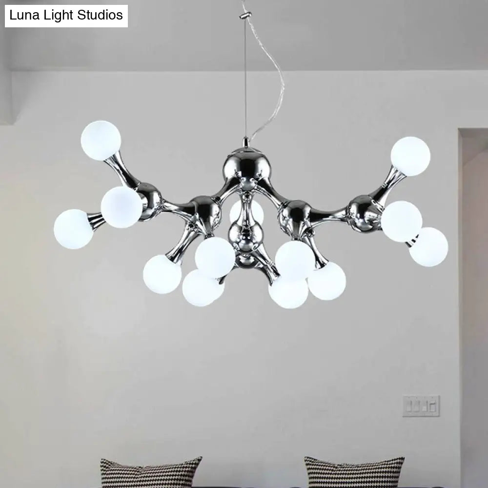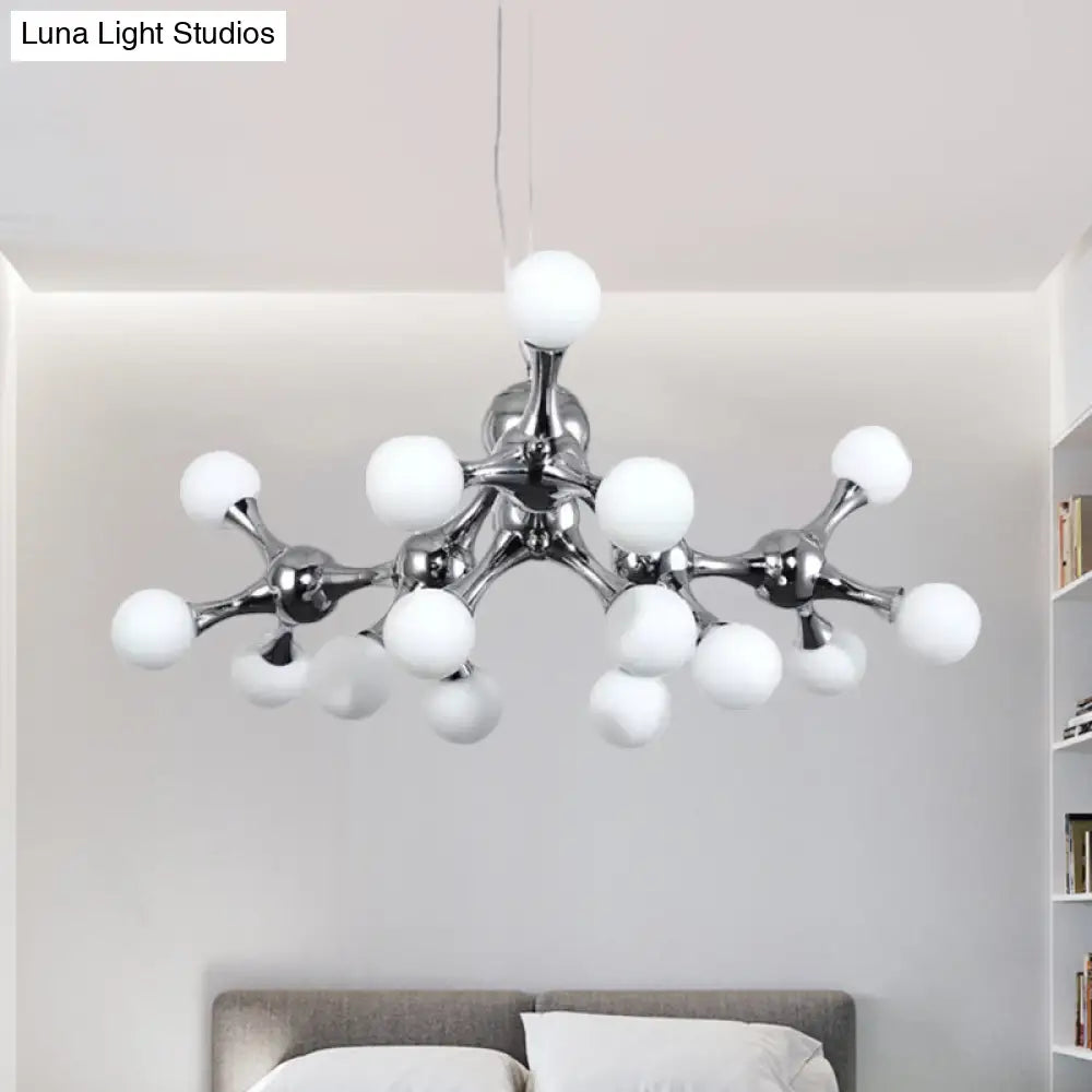 Lámpara de araña contemporánea Starburst de metal con pantalla de cristal blanco - Acabado cromado