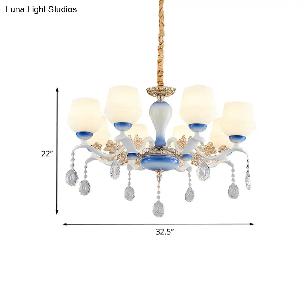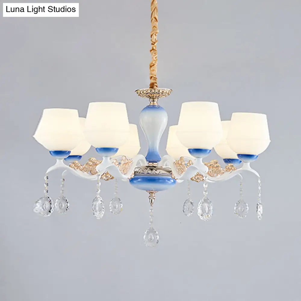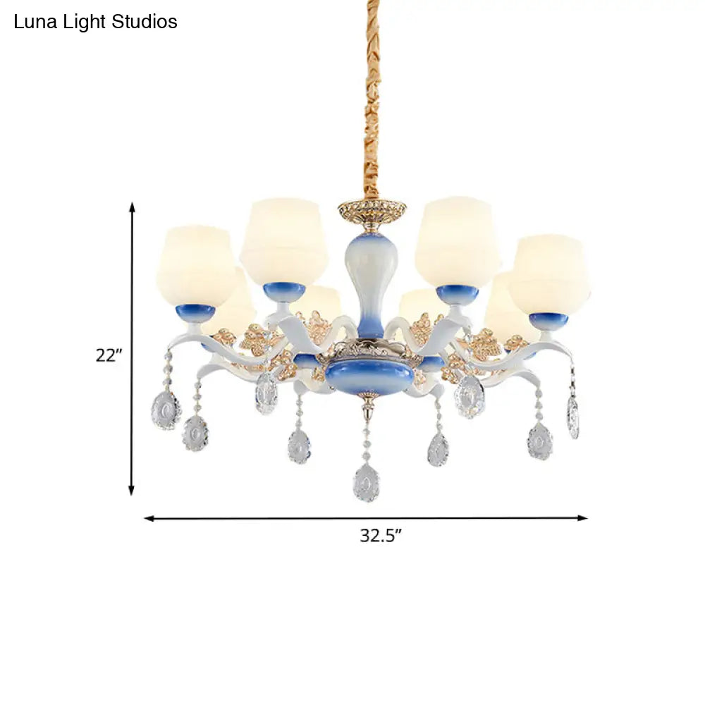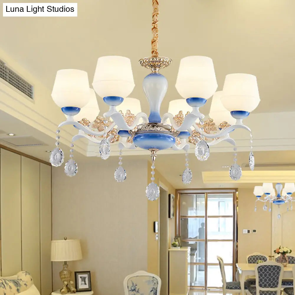 Lámpara de araña colgante cónica moderna - 8 bombillas, cristal color marfil (azul/blanco)