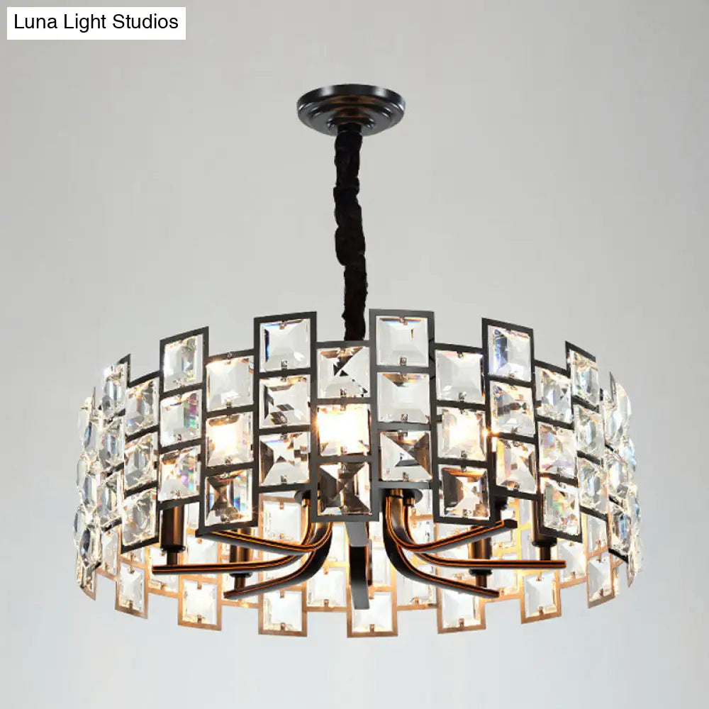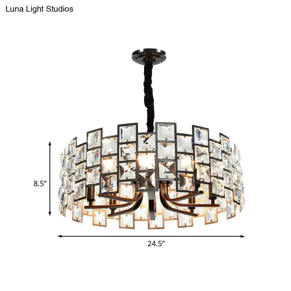Lámpara colgante redonda moderna - Lámpara de araña de bloques de cristal de 8 luces en color negro