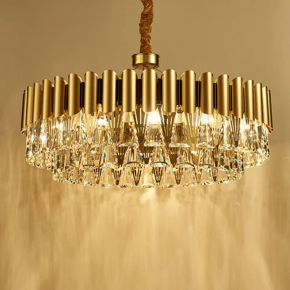 Lámpara de araña modernista de cristal de 4 niveles - Lámpara colgante dorada - 8/12 luces