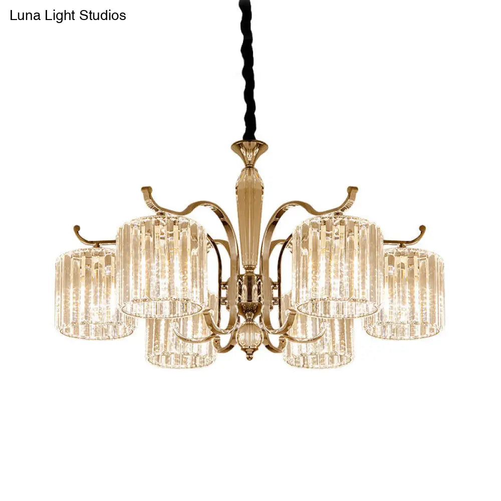 Lámpara de araña modernista de cristal transparente con prisma - Lámpara colgante cilíndrica de 6 luces
