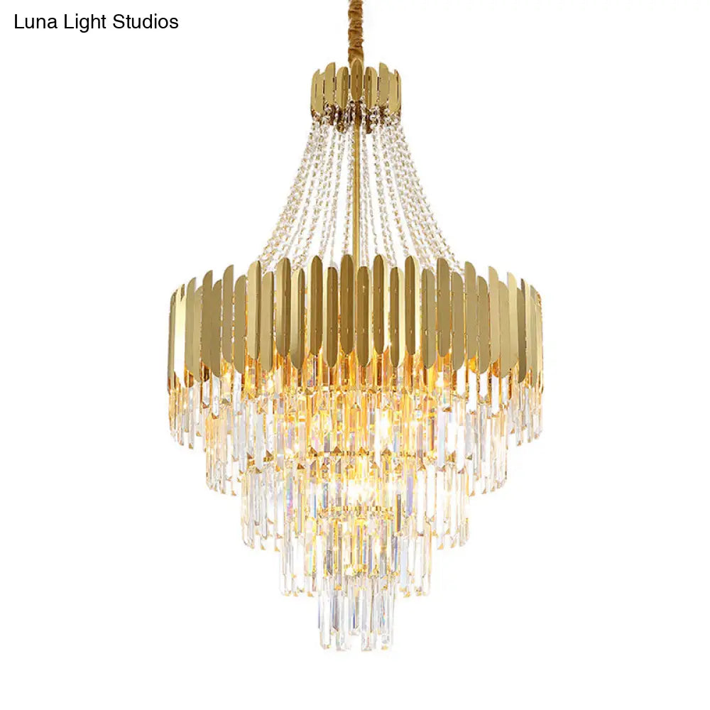 Lámpara de araña colgante dorada: Lámpara colgante de estilo vintage con detalles de cristal K9 para escaleras