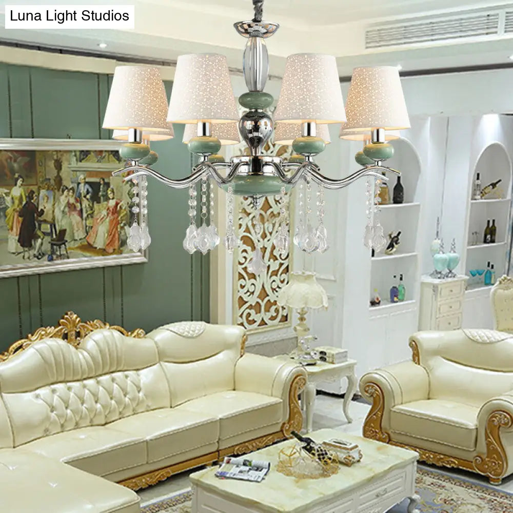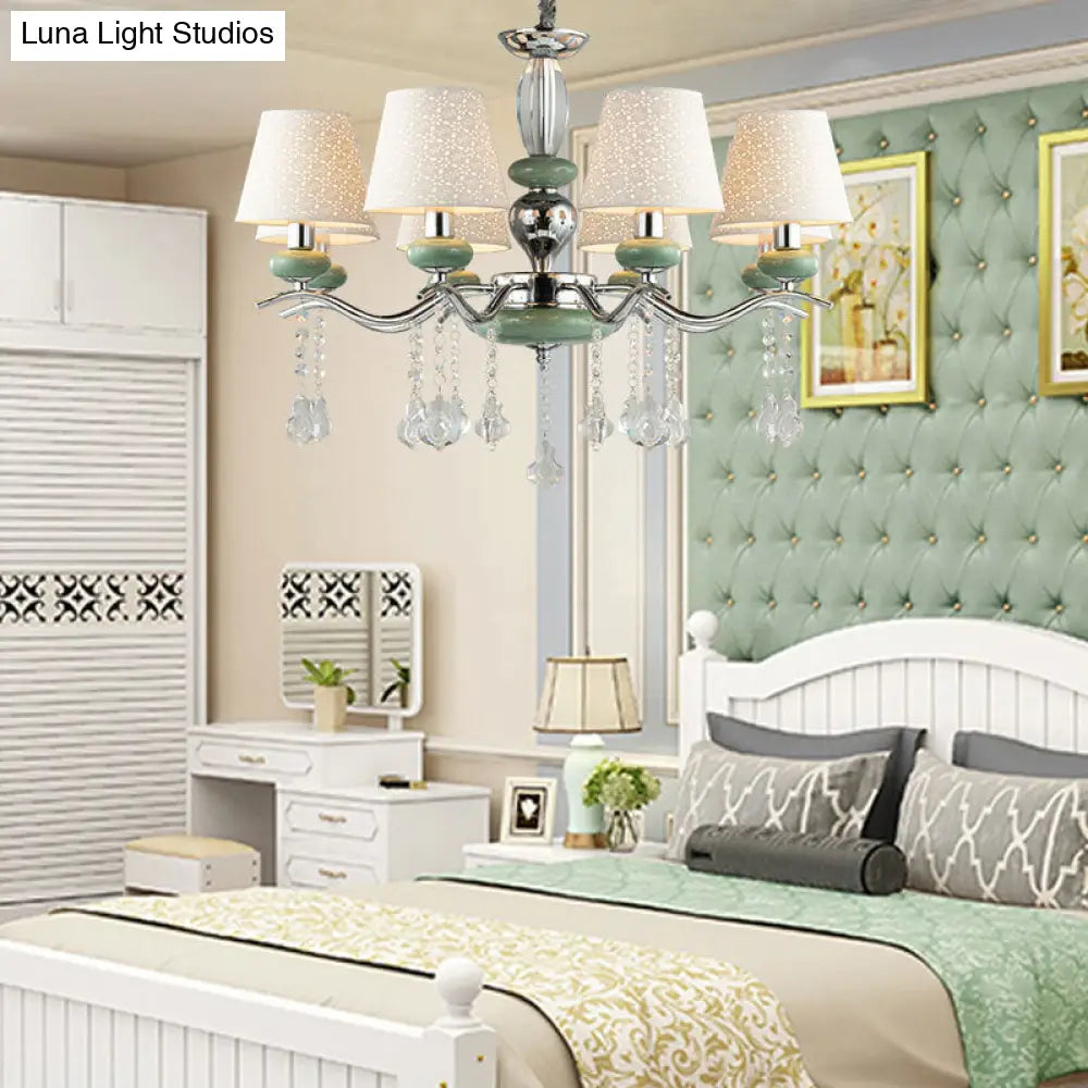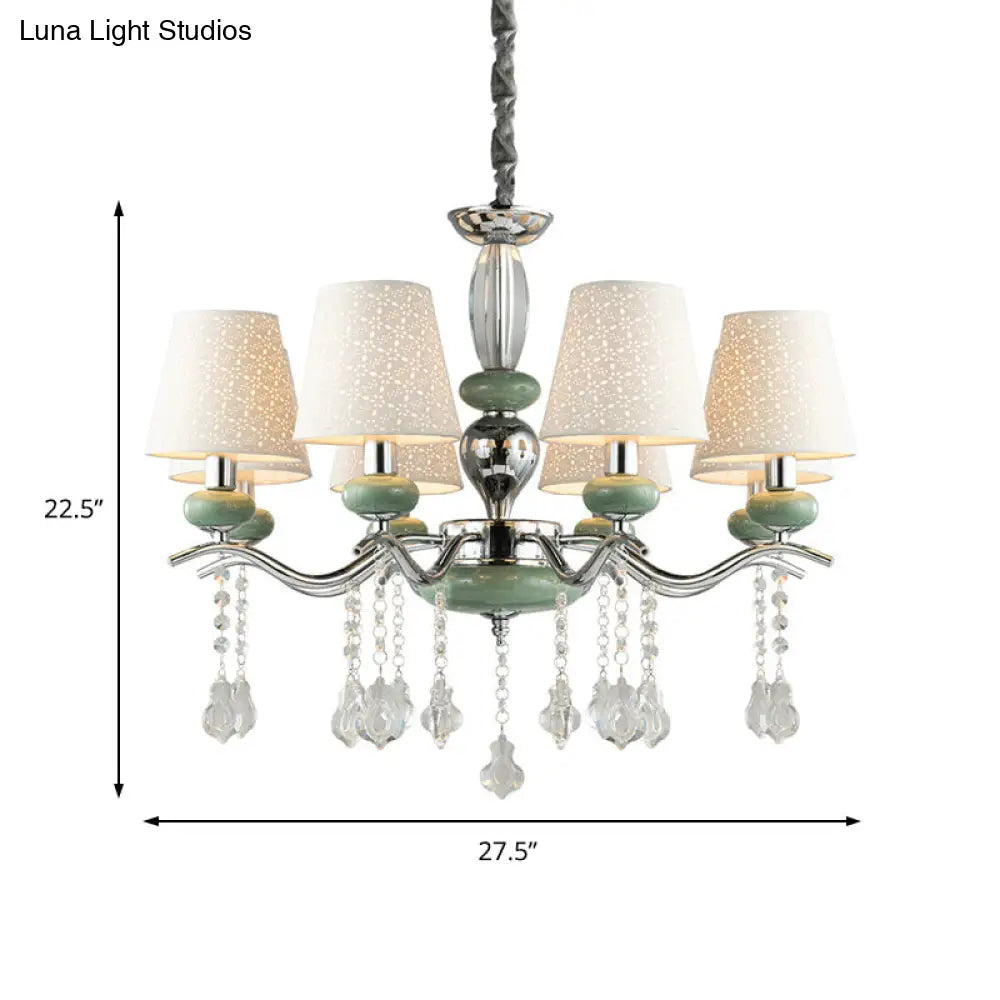 Lámpara colgante cónica nórdica moderna con 8 luces y gota de cristal - Araña verde para dormitorio