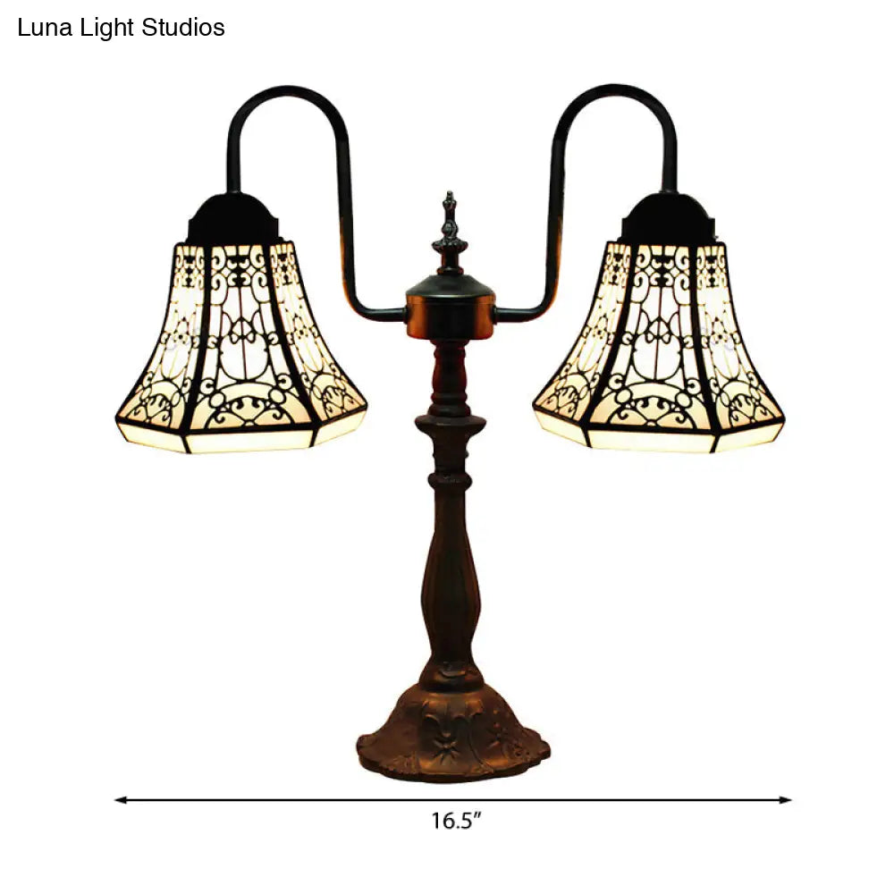 Lámpara de escritorio Tiffany antigua en azul y blanco - Pantalla artesanal para oficina, luz de lectura, cristal artístico, 2 luces - Perfecta para la mesilla de noche