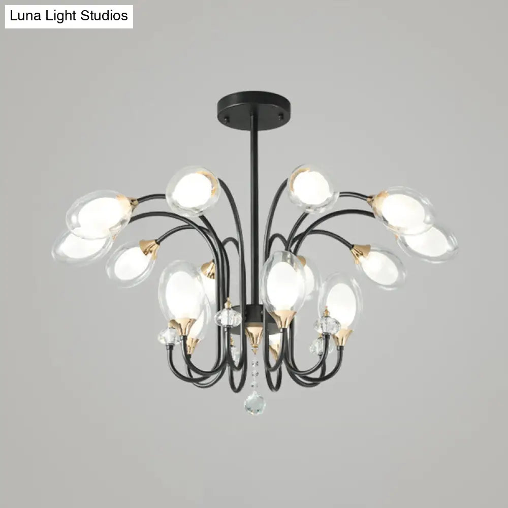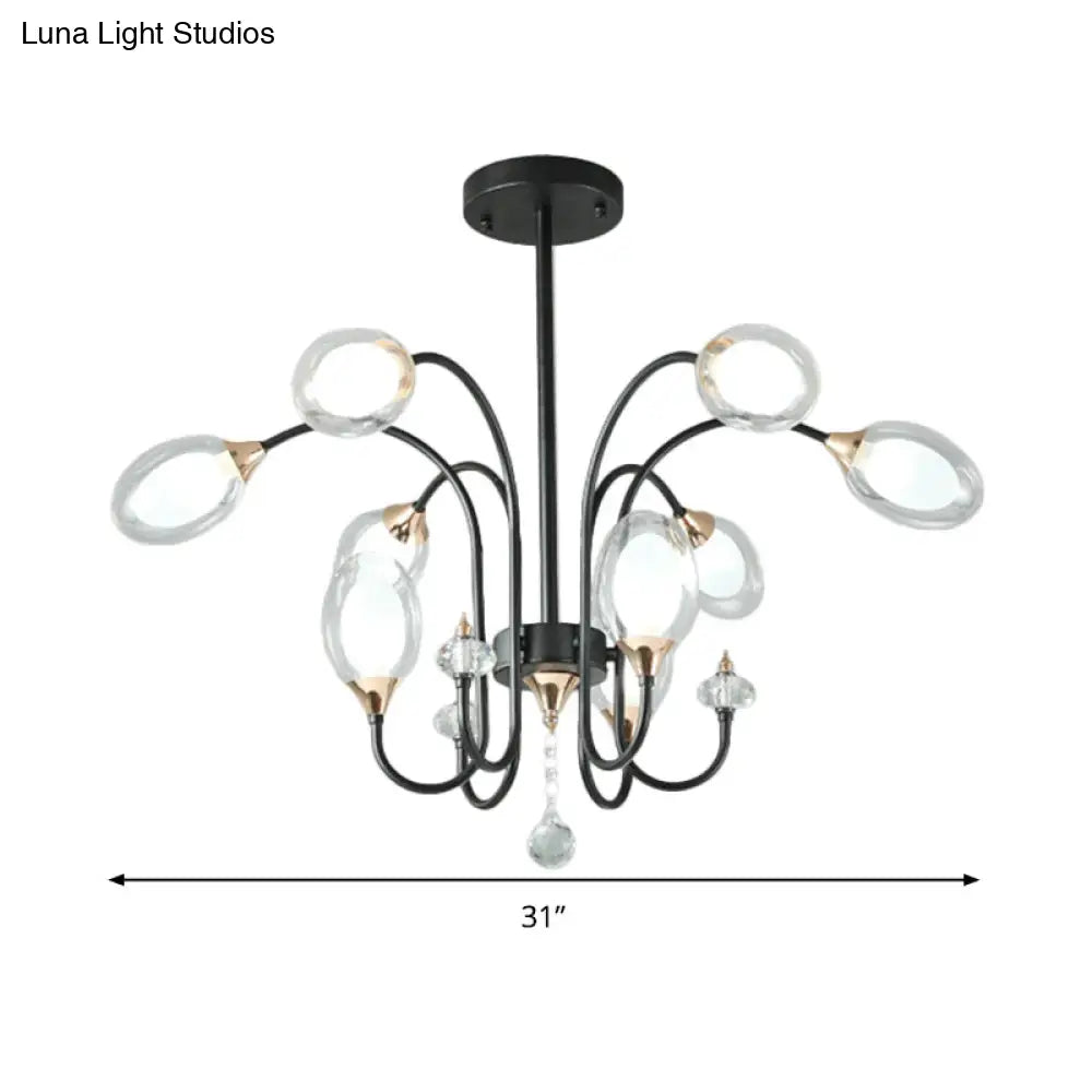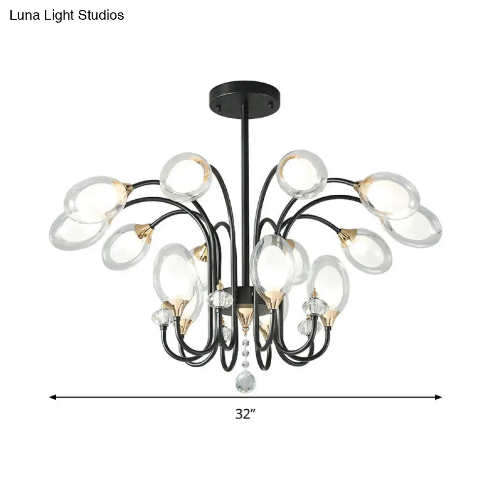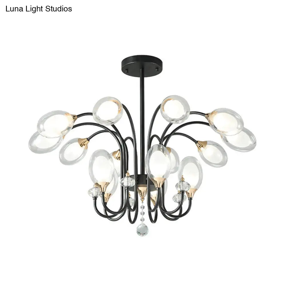 Lámpara de araña colgante contemporánea de cristal transparente - Forma ovalada, 9/15 bombillas - Lámpara colgante negra