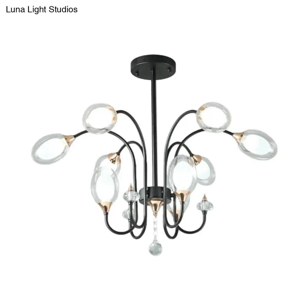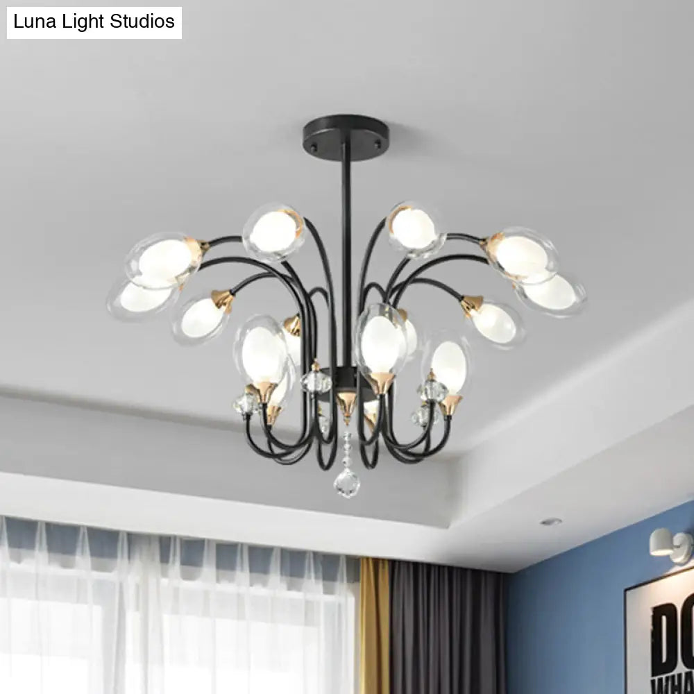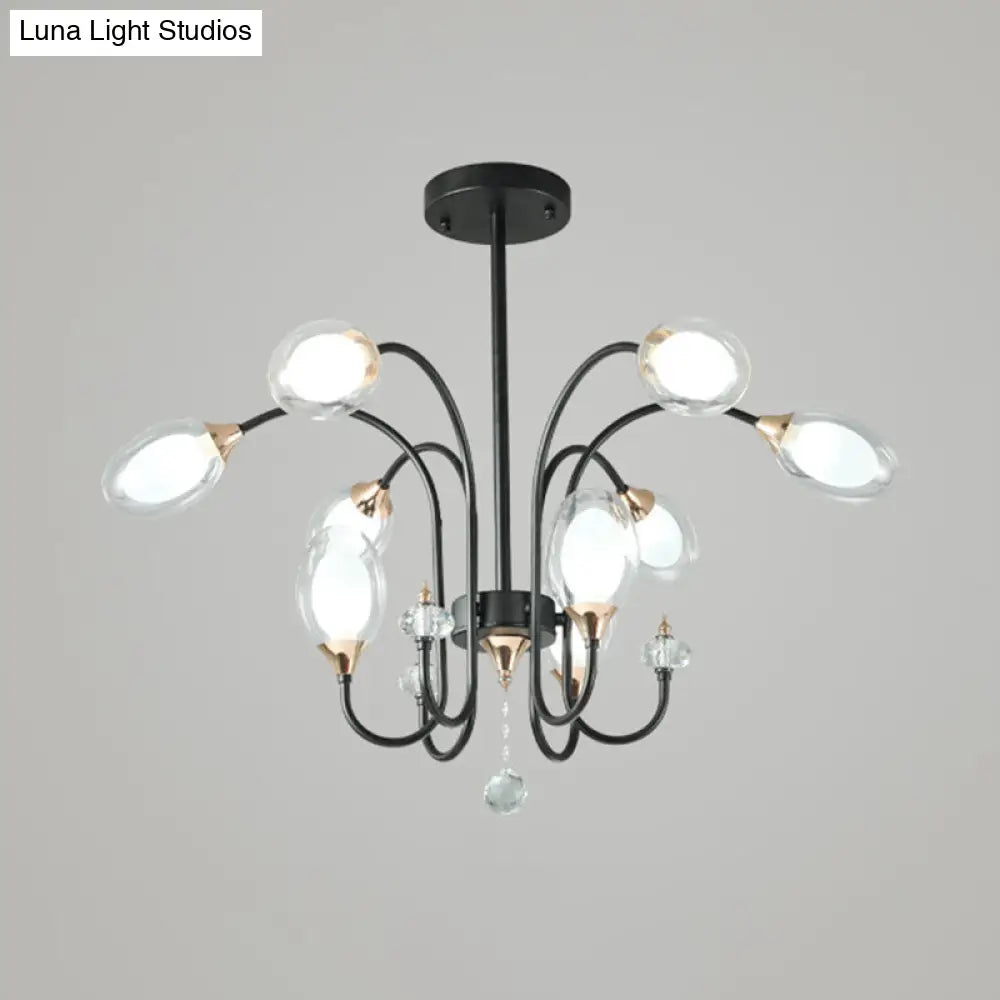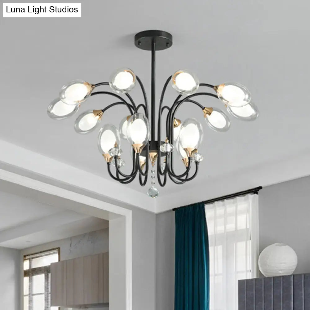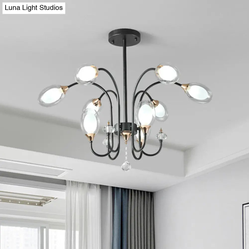 Lámpara de araña colgante contemporánea de cristal transparente - Forma ovalada, 9/15 bombillas - Lámpara colgante negra
