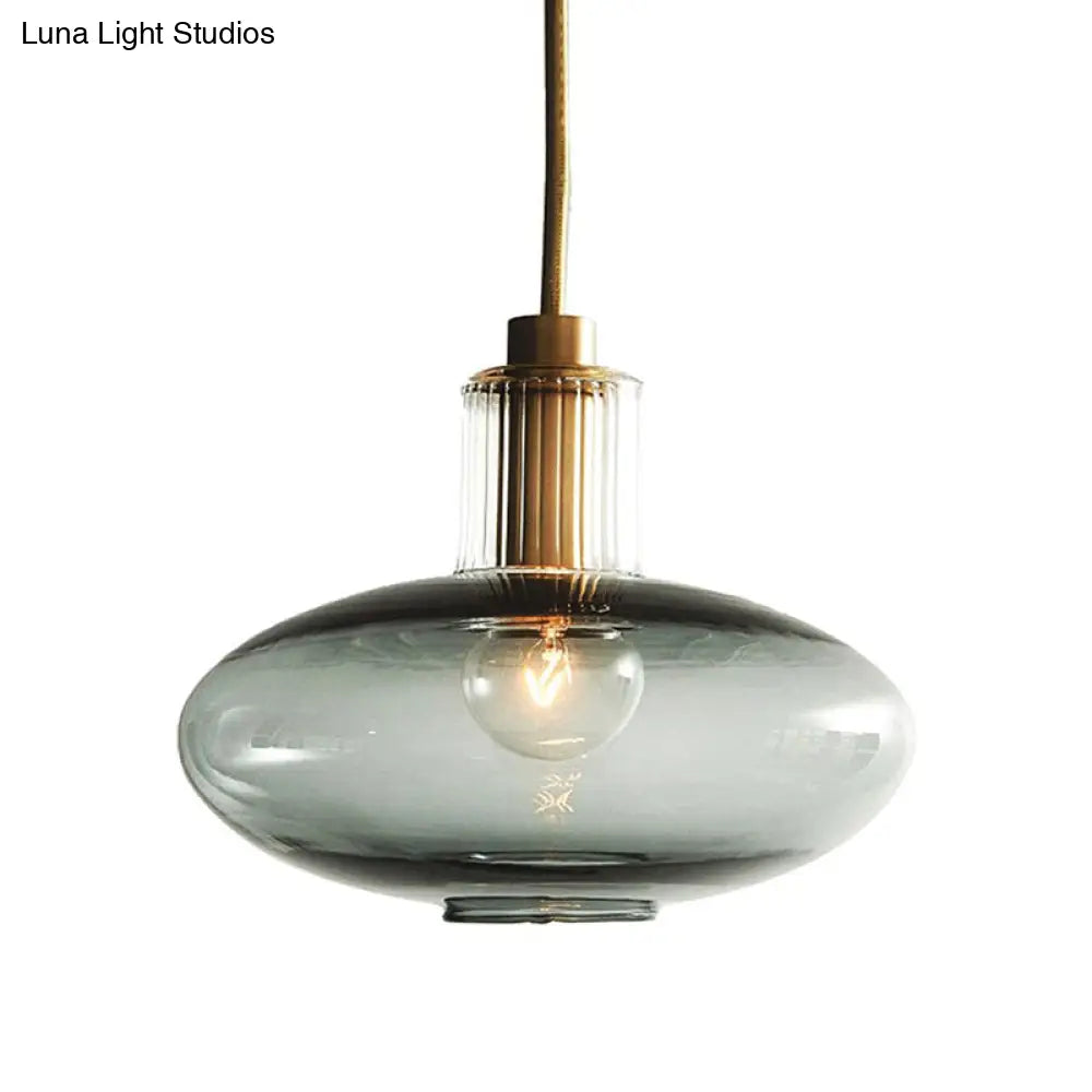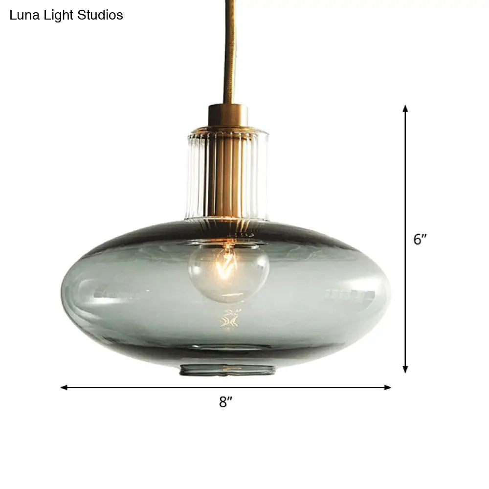Lámpara colgante ovalada de cristal azul de mediados de siglo con corcho de latón para comedor