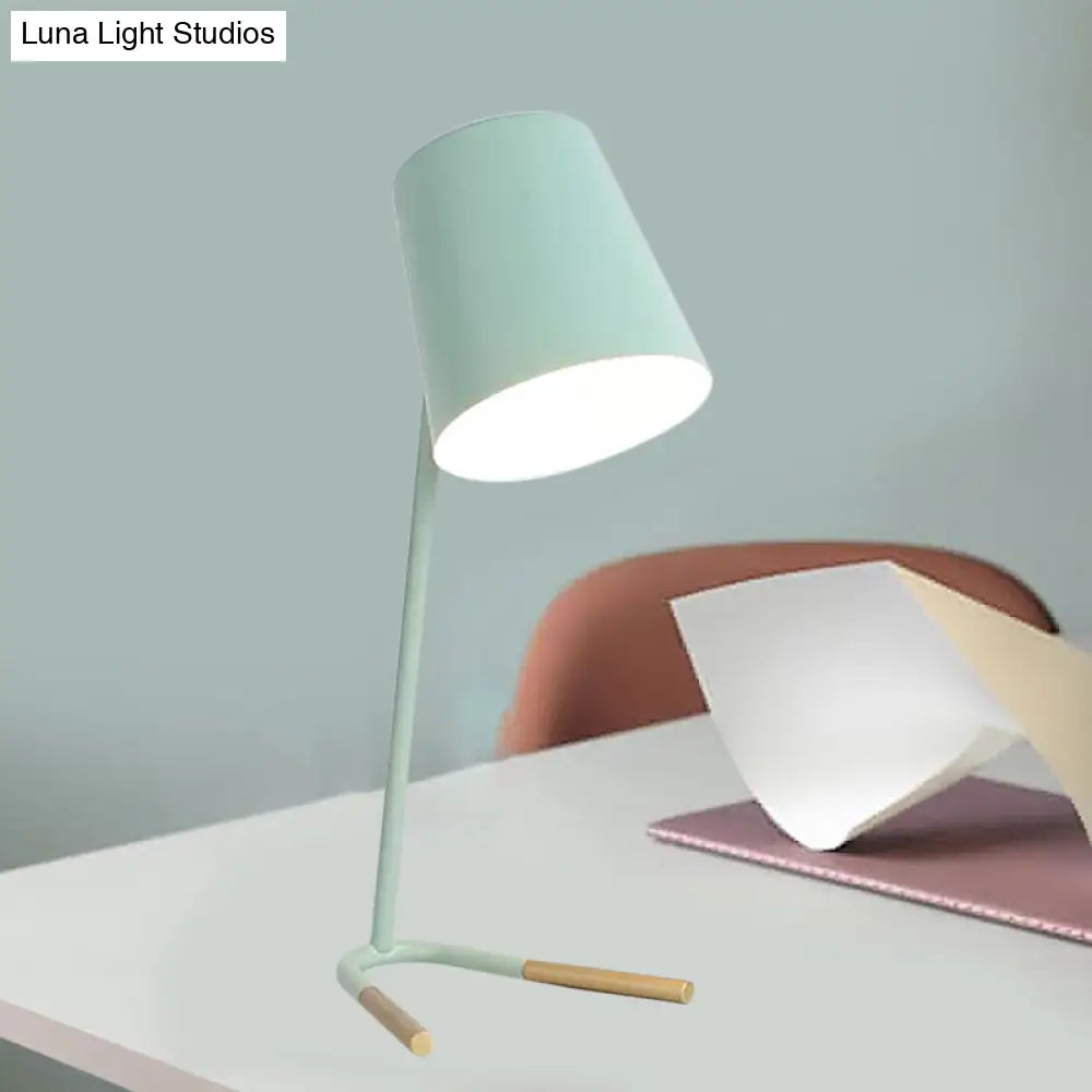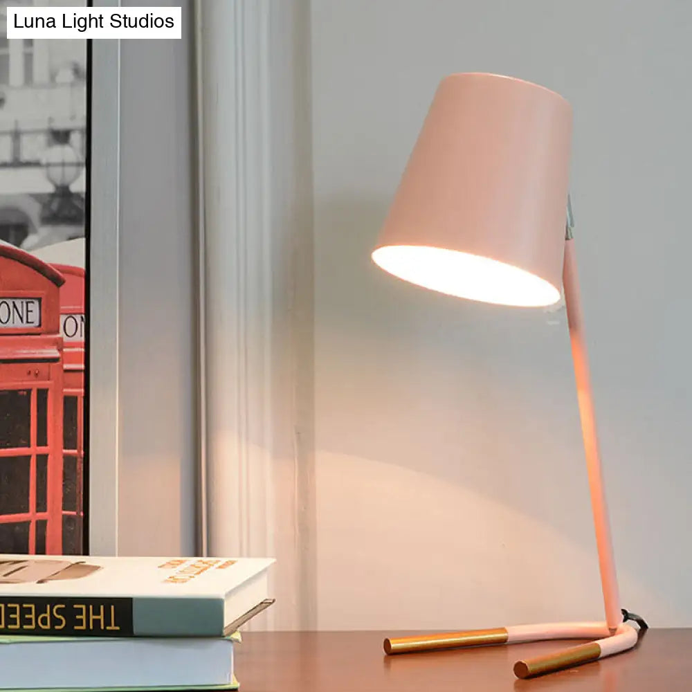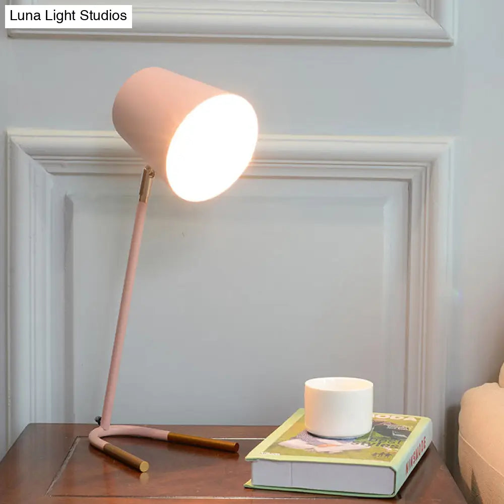 Athena - Lámpara de mesa de noche cónica rosa/verde, estilo macaron, con un cabezal, diseño giratorio y base de horquilla.
