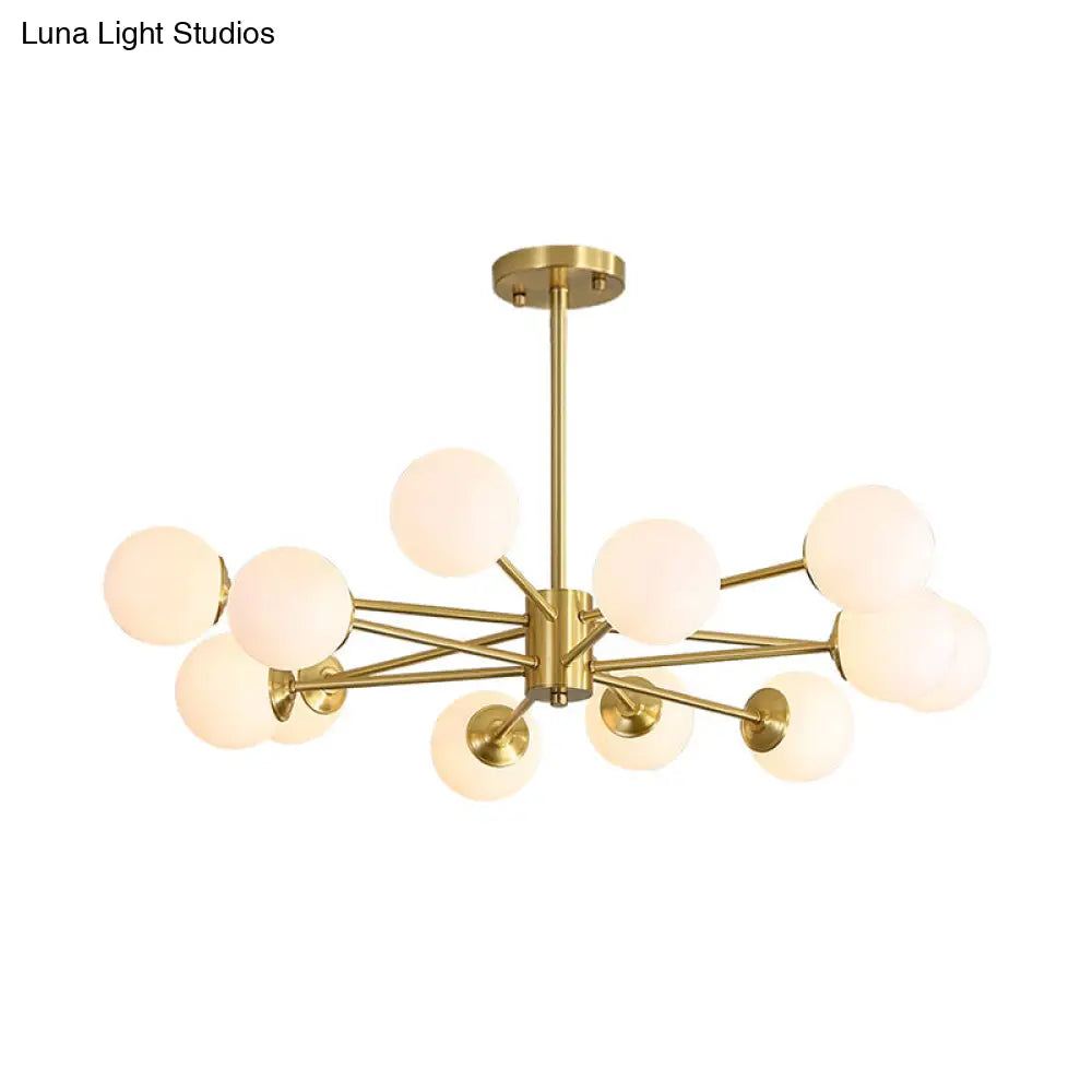 Lámpara de araña posmoderna de cristal color marfil con diseño dorado para sala de estar