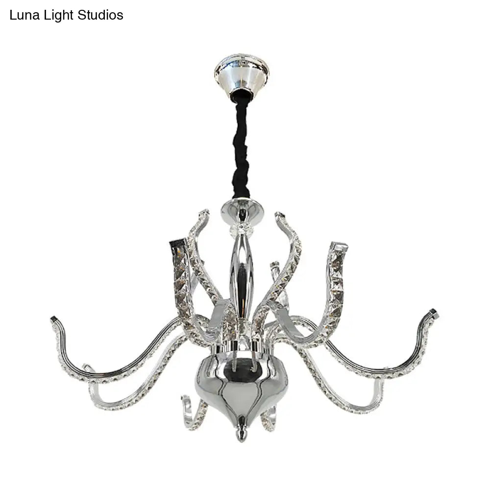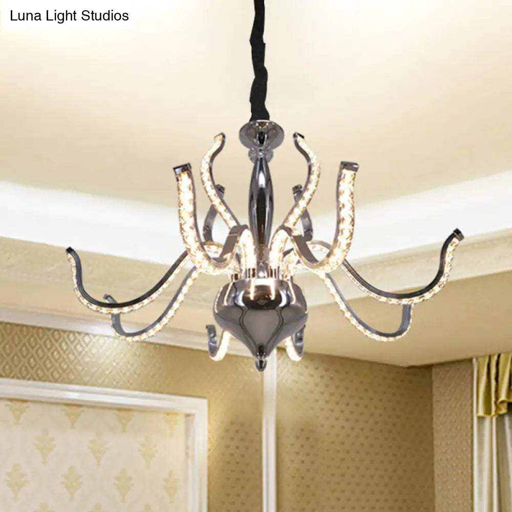 Lámpara de araña LED minimalista de cristal cromado | Iluminación cálida/blanca