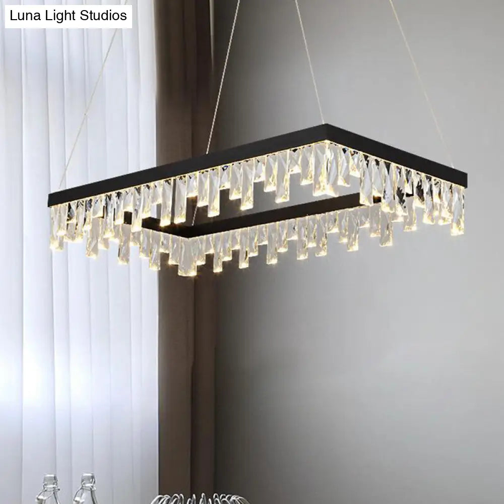 Lámpara de araña LED negra moderna con bloques de cristal - Lámpara colgante rectangular de 16"/23.5" de ancho