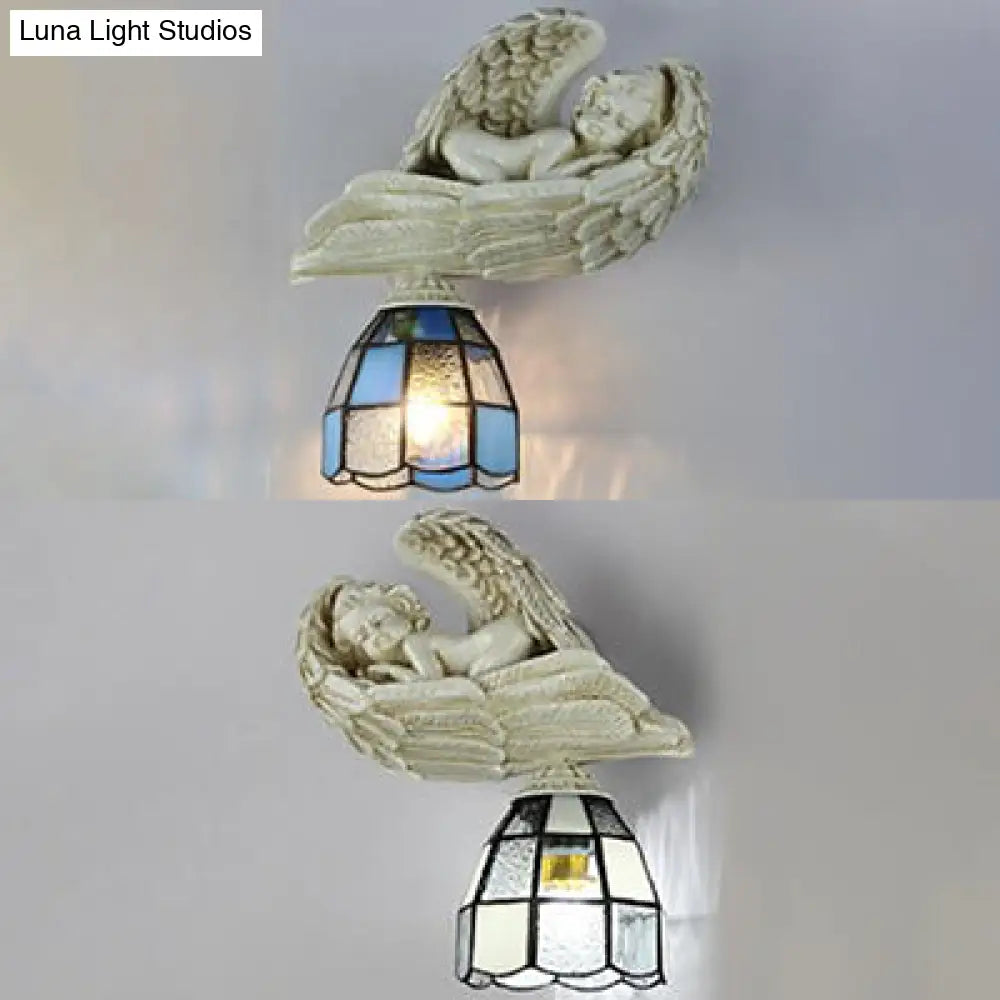 Aplique de pared con forma de ángel y pantalla de cristal de colores - Blanco/Azul