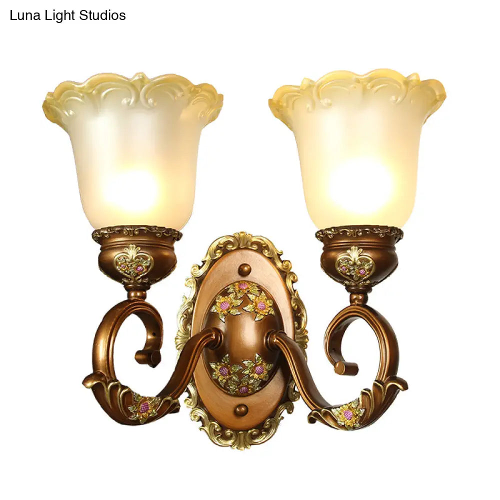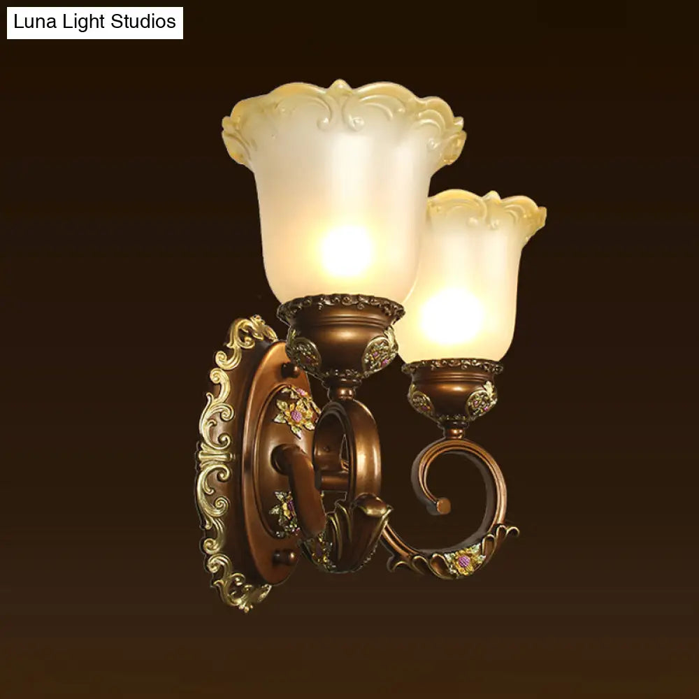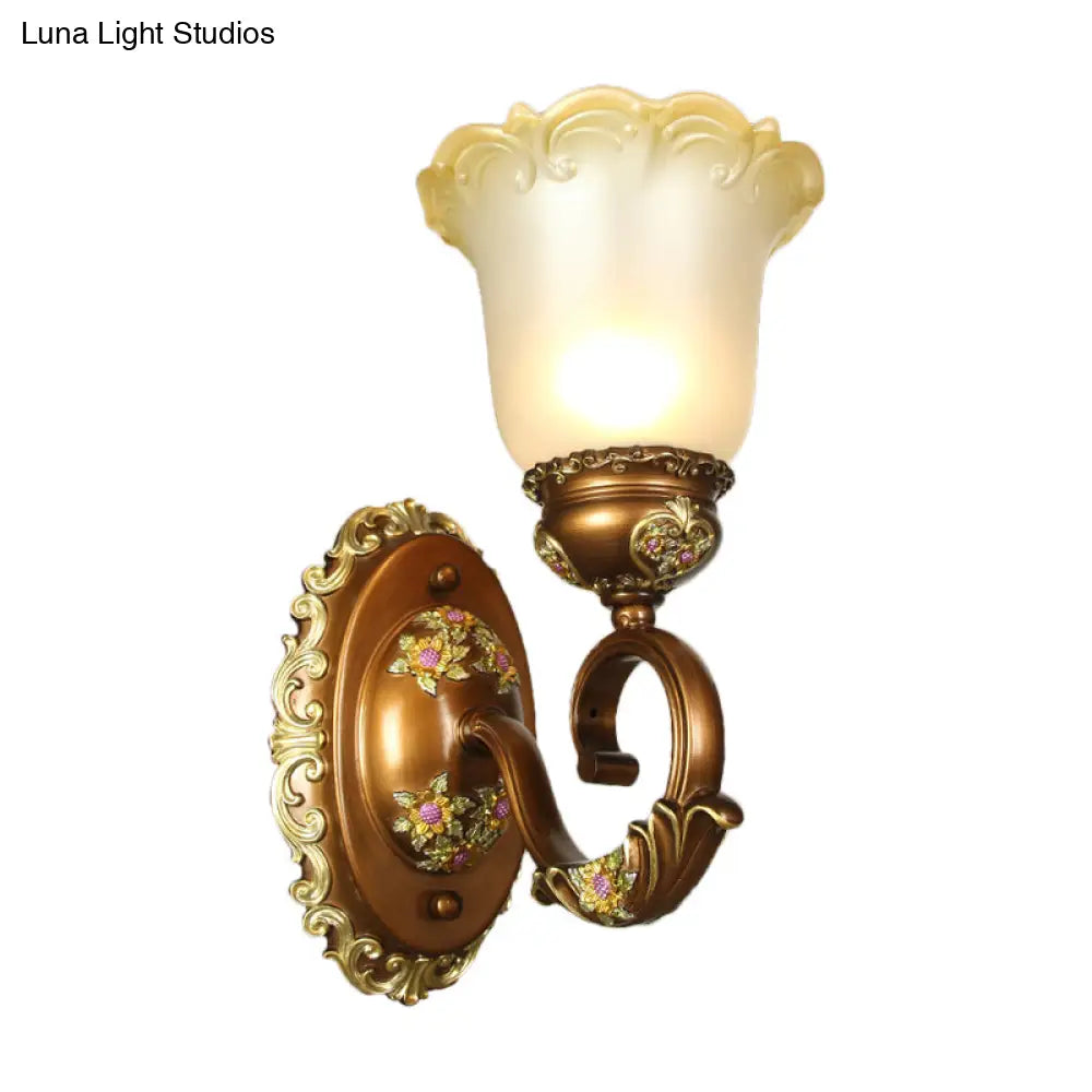 Aplique de pared de cristal marrón con forma de flor de estilo retro