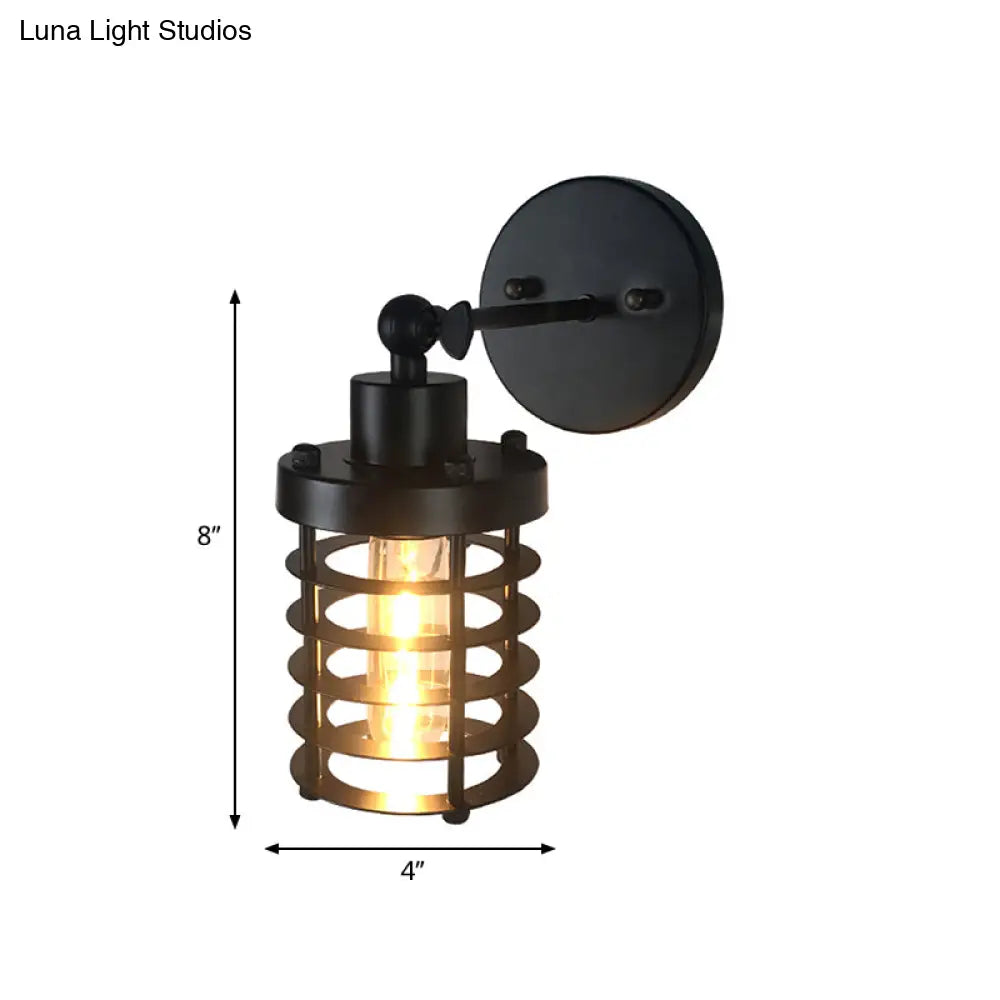 Aplique de pared cilíndrico/ovalado de estilo retro negro con jaula - Mini aplique metálico con 1 cabezal