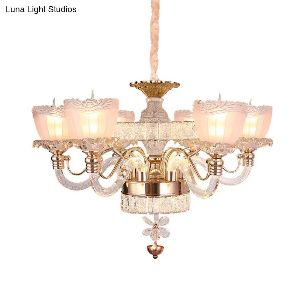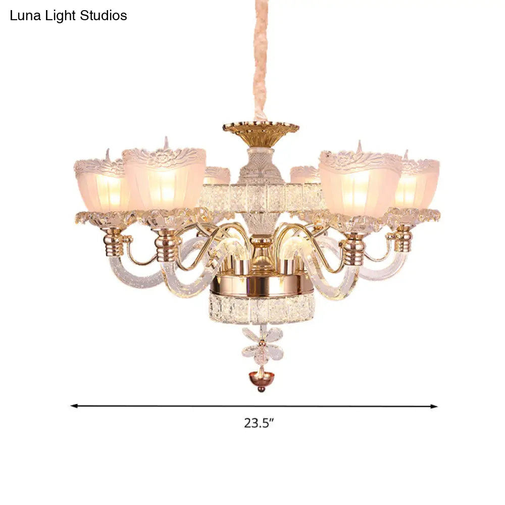 Lámpara de techo moderna de cristal transparente - Araña tipo cuenco en oro rosa con 6 cabezales