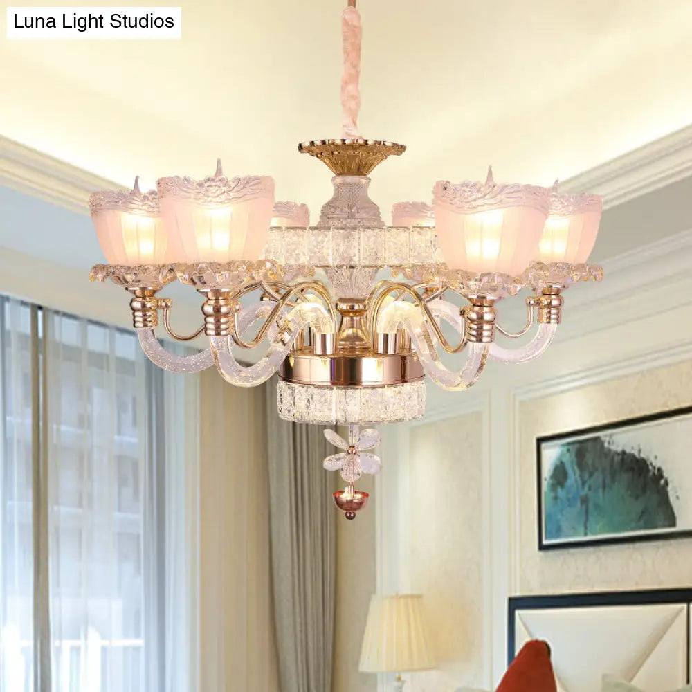 La pantalla de la lámpara de araña es de cristal esmerilado, con la luz orientada hacia abajo. Esta hermosa lámpara, de un solo nivel y elaborada en cristal, es perfecta para añadir un toque de distinción a cualquier interior. Su base es redonda y es compatible con múltiples voltajes. Admite bombillas LED, incandescentes o fluorescentes. Además, la base de la bombilla es E12 o E14, lo que permite utilizar una amplia variedad de fuentes de luz.