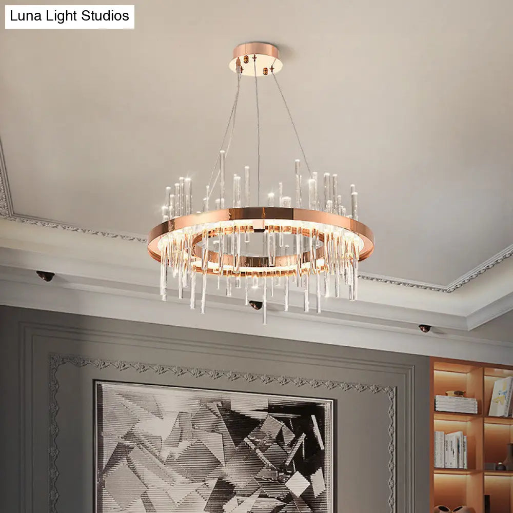 Lámpara de techo colgante circular moderna con tira de cristal y luces LED - Oro rosa para dormitorio