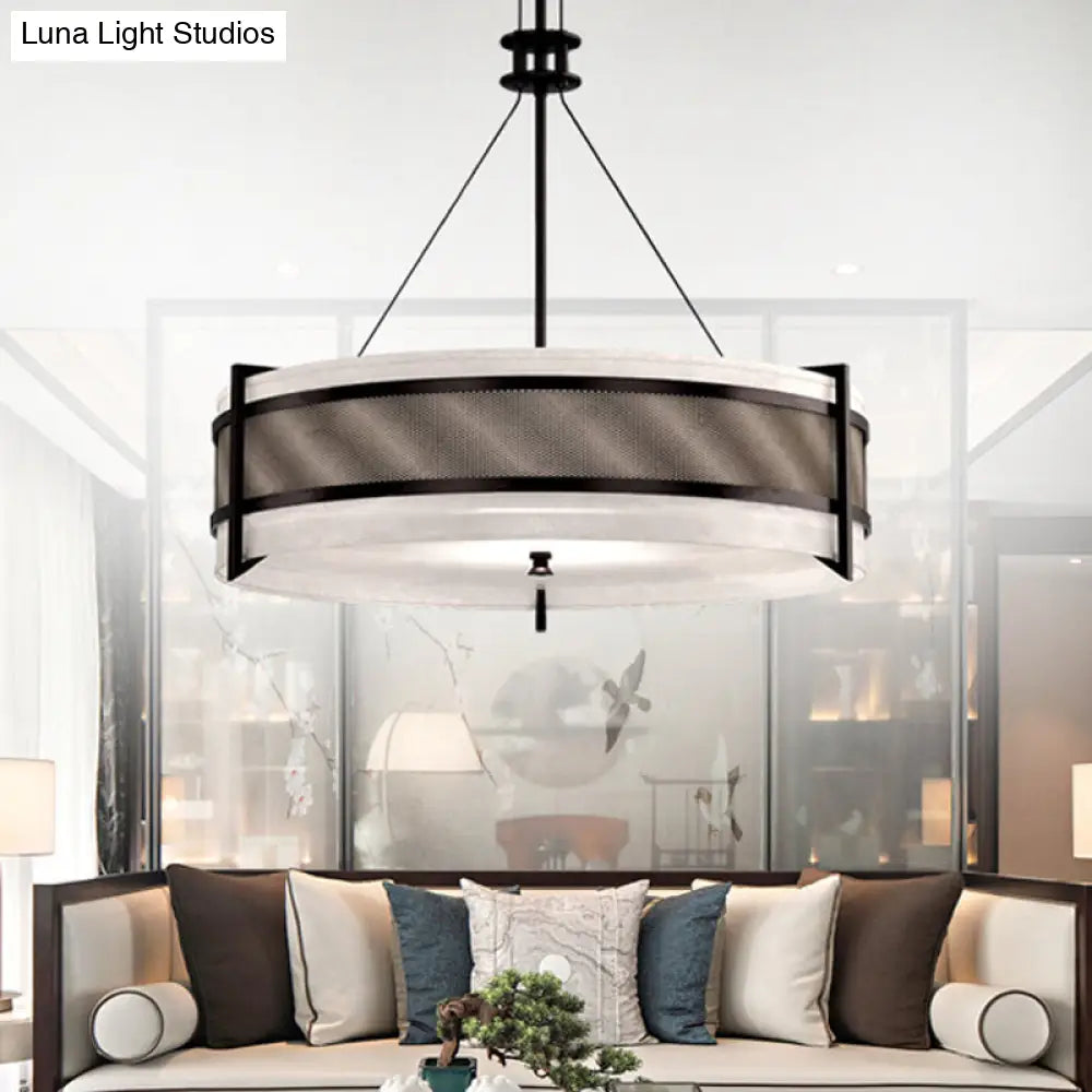 Lámpara de techo redonda moderna de tela negra: Luz LED para sala de estar