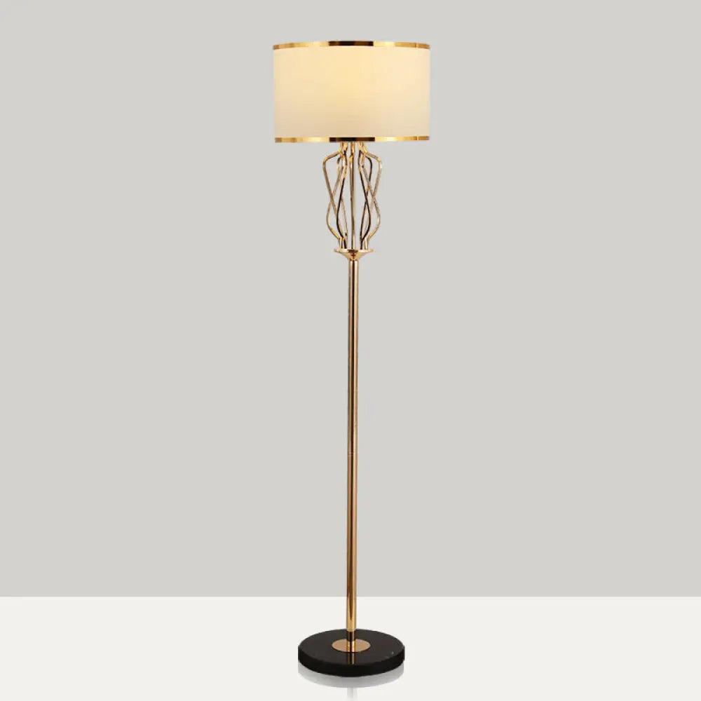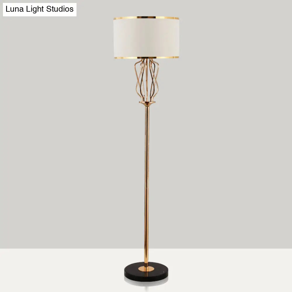 Lámpara de pie redonda de tela de estilo clásico con un cabezal, acabado en latón – Ideal para la iluminación del salón