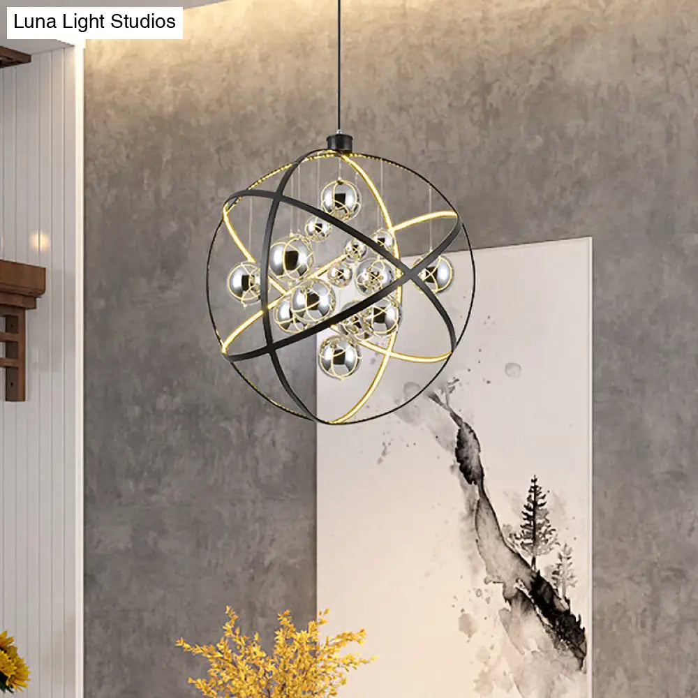Lámpara colgante LED redonda de cristal ahumado modernista, color negro