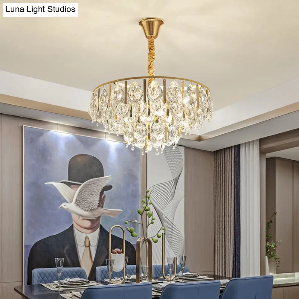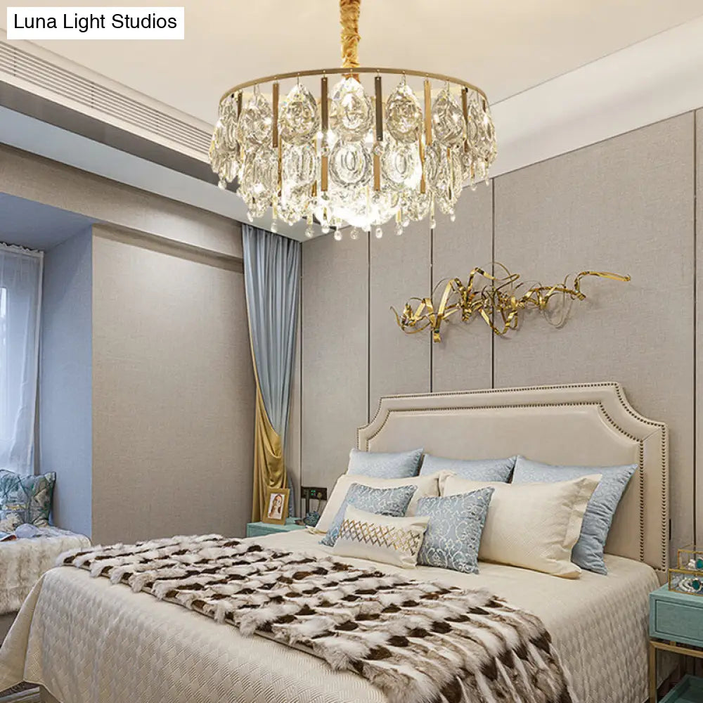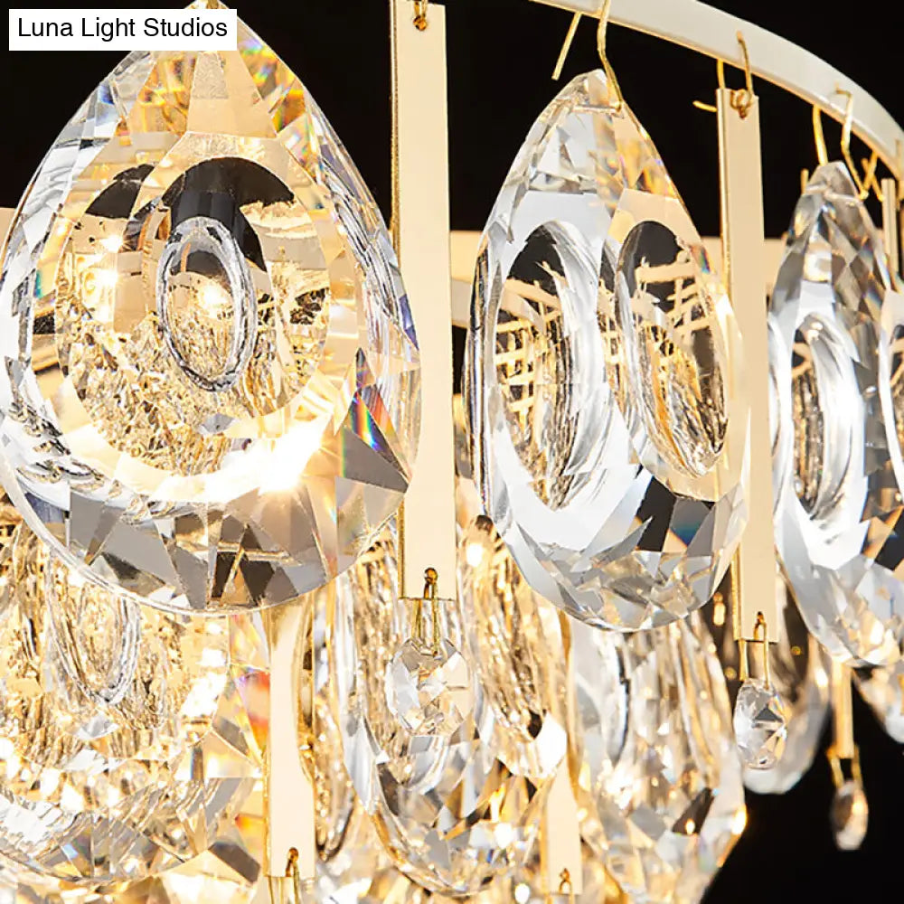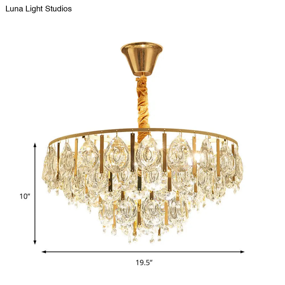 Kit de lámpara colgante contemporánea redonda en forma de lágrima con cristales: candelabro dorado de 3/4 luces, 40,6 cm/49,5 cm de ancho