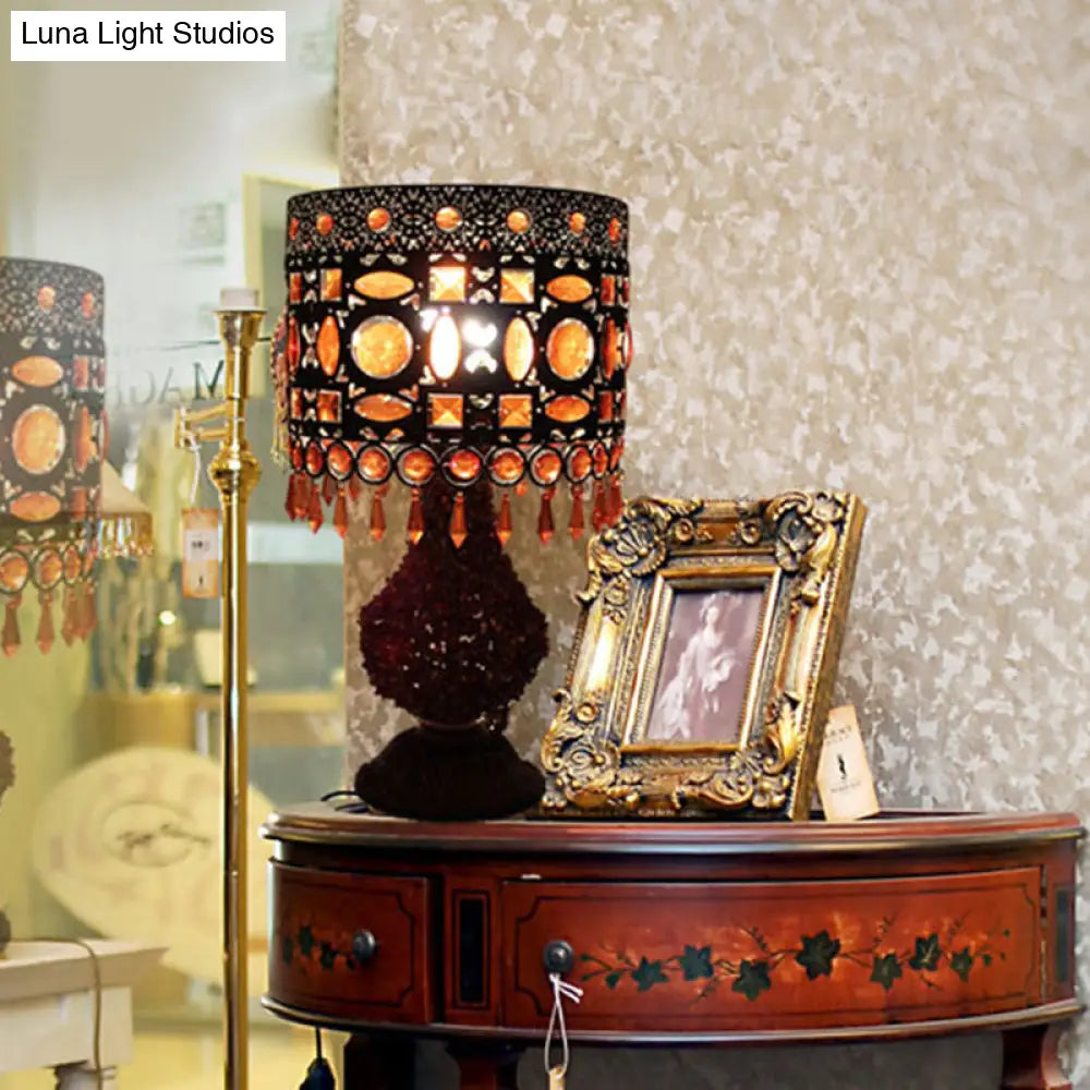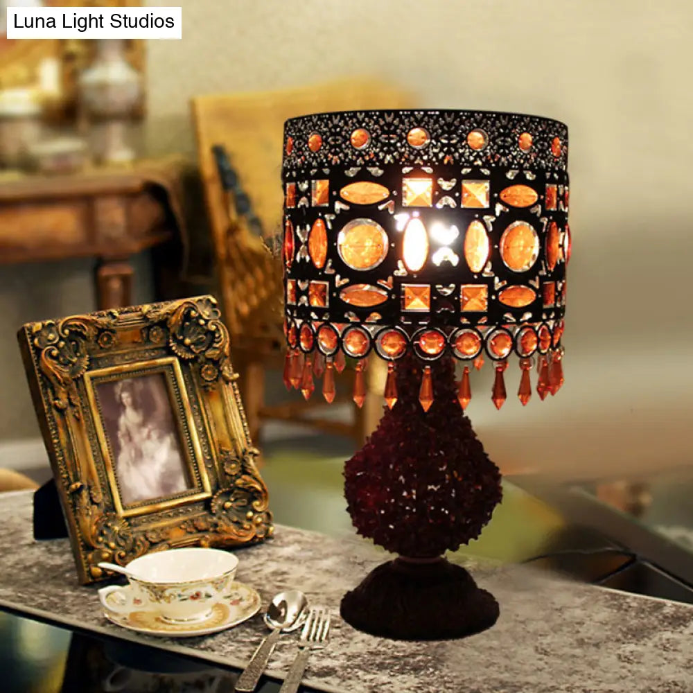 Lámpara de mesilla de noche cilíndrica Art Déco de metal oxidado - 1 bombilla, para salón