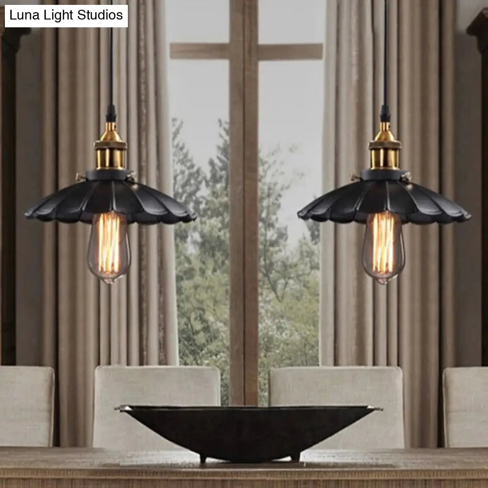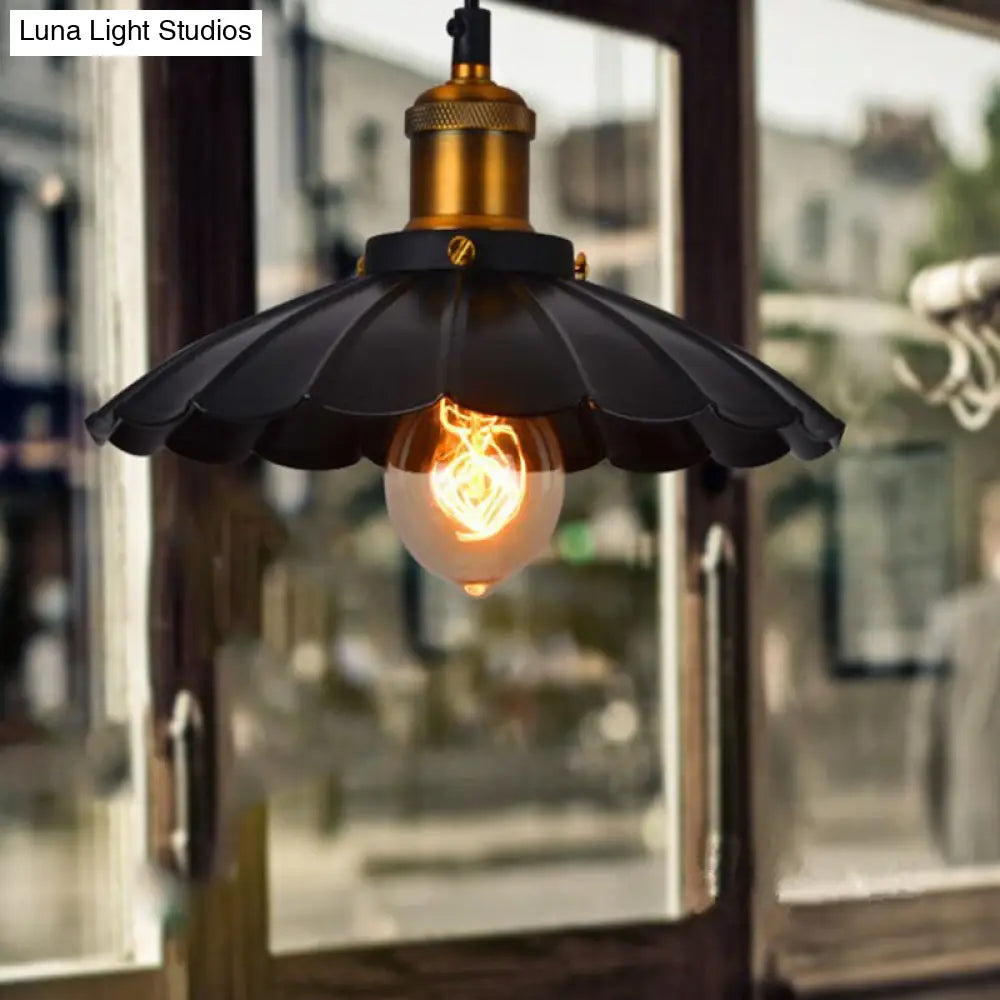 Lámpara de techo colgante de hierro negro festoneado - Lámpara colgante para comedor tipo loft con 1 bombilla