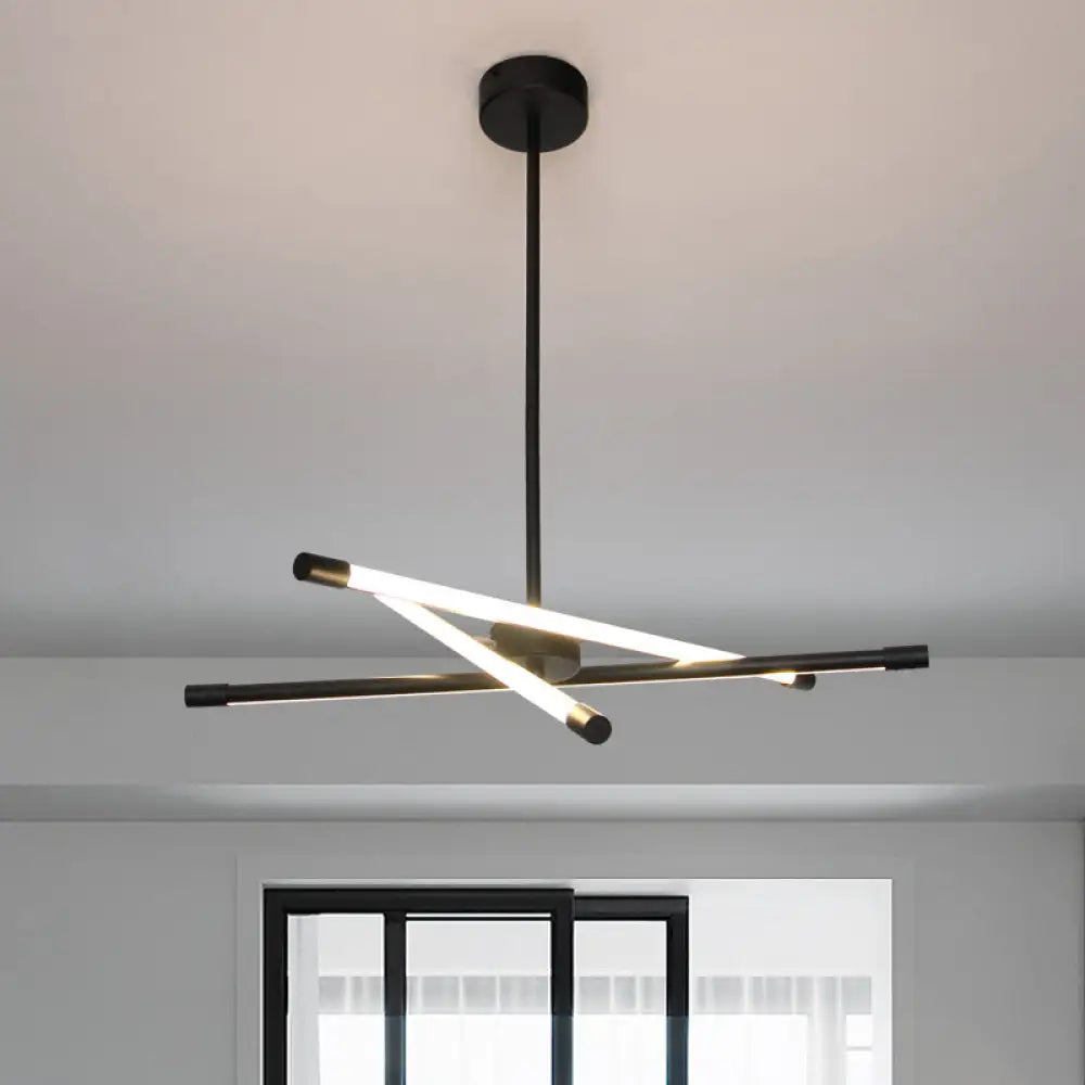 Elegante lámpara de araña lineal tubular de metal - Lámpara colgante LED negra para sala de estar