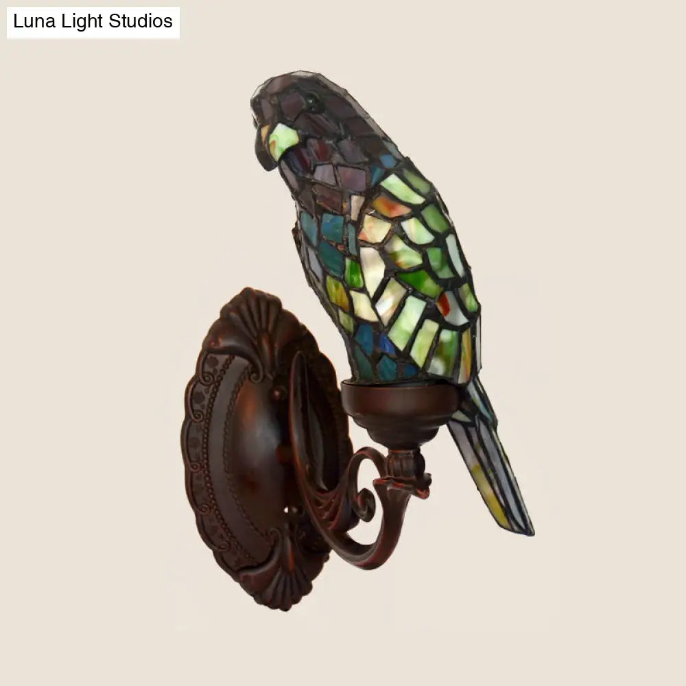 Aplique de pared clásico de vitral con forma de loro - Lámpara de una sola bombilla para sala de estar
