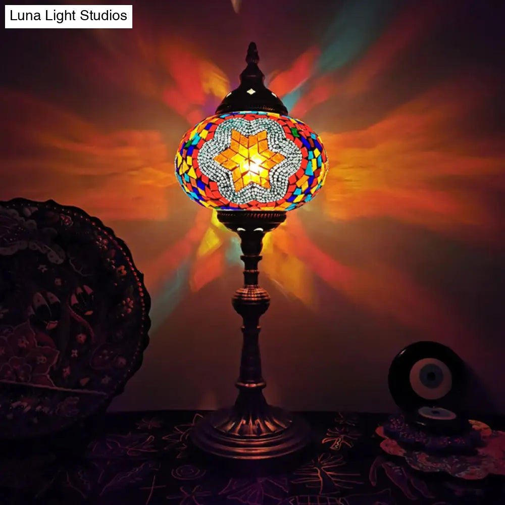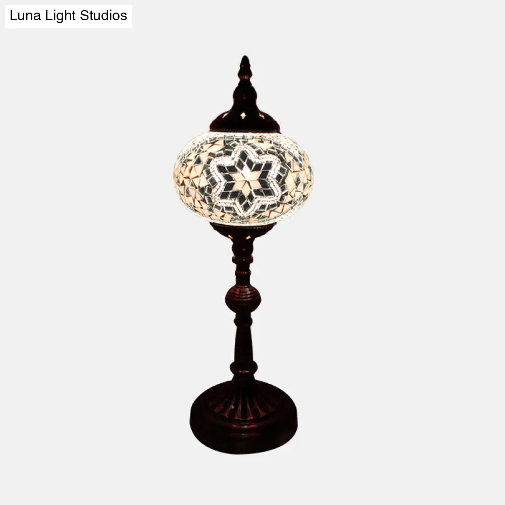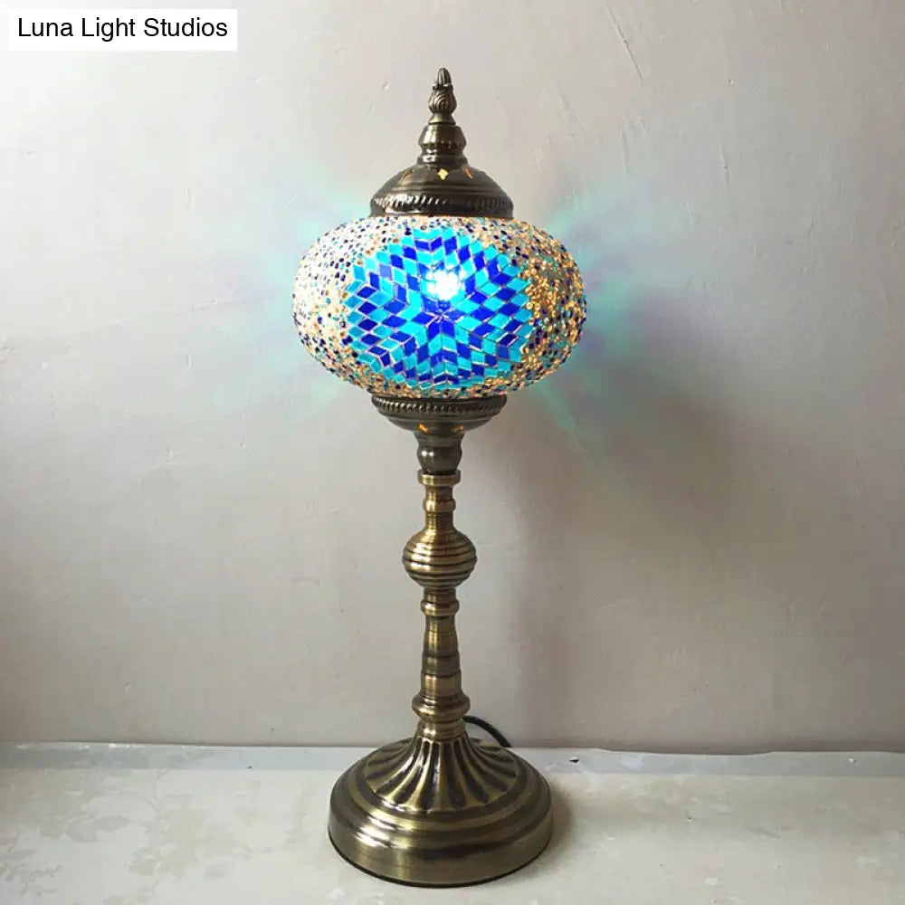 Lámpara de mesa de noche antigua de vitral con diseño elíptico – Ideal para el escritorio del dormitorio – Disponible en blanco, rojo y azul