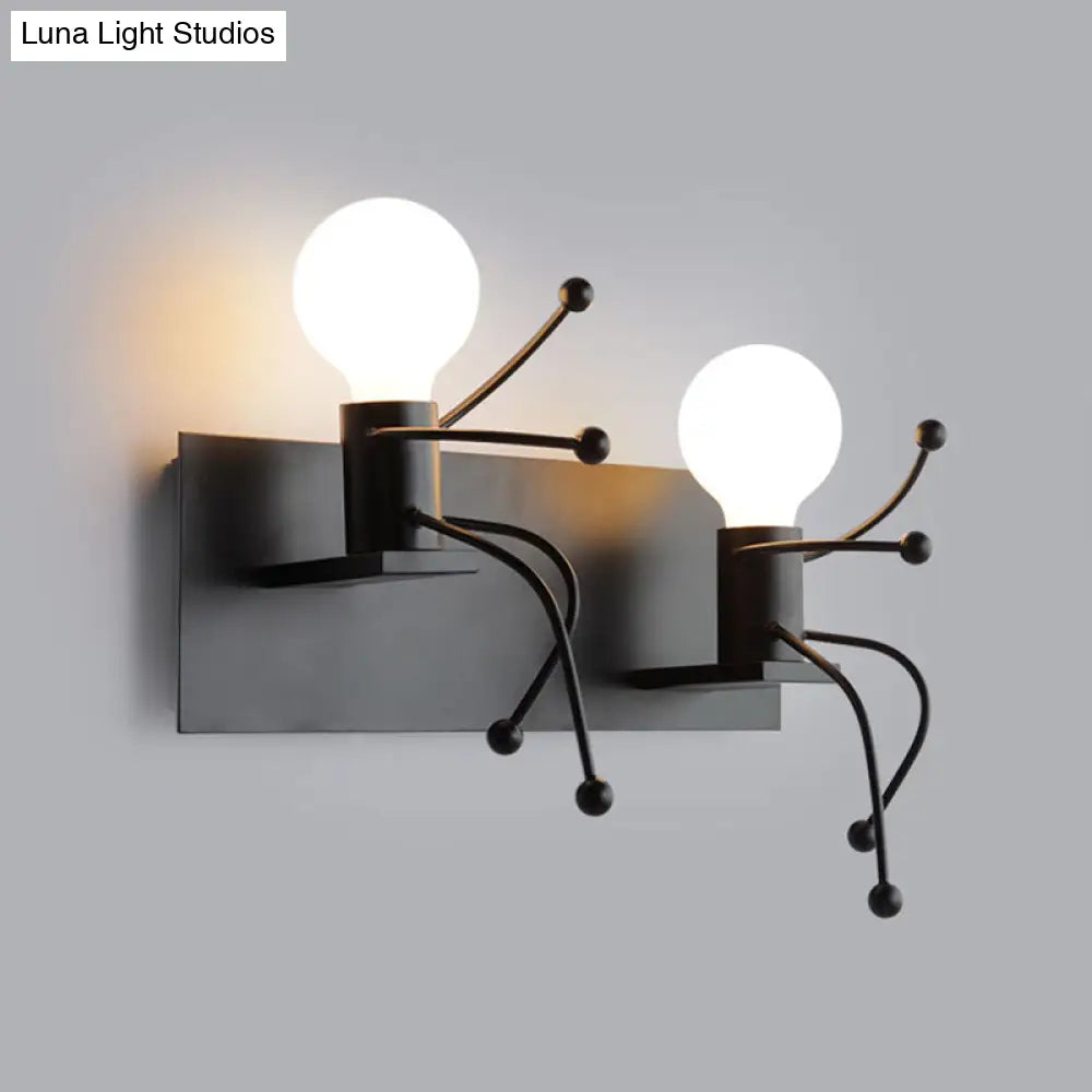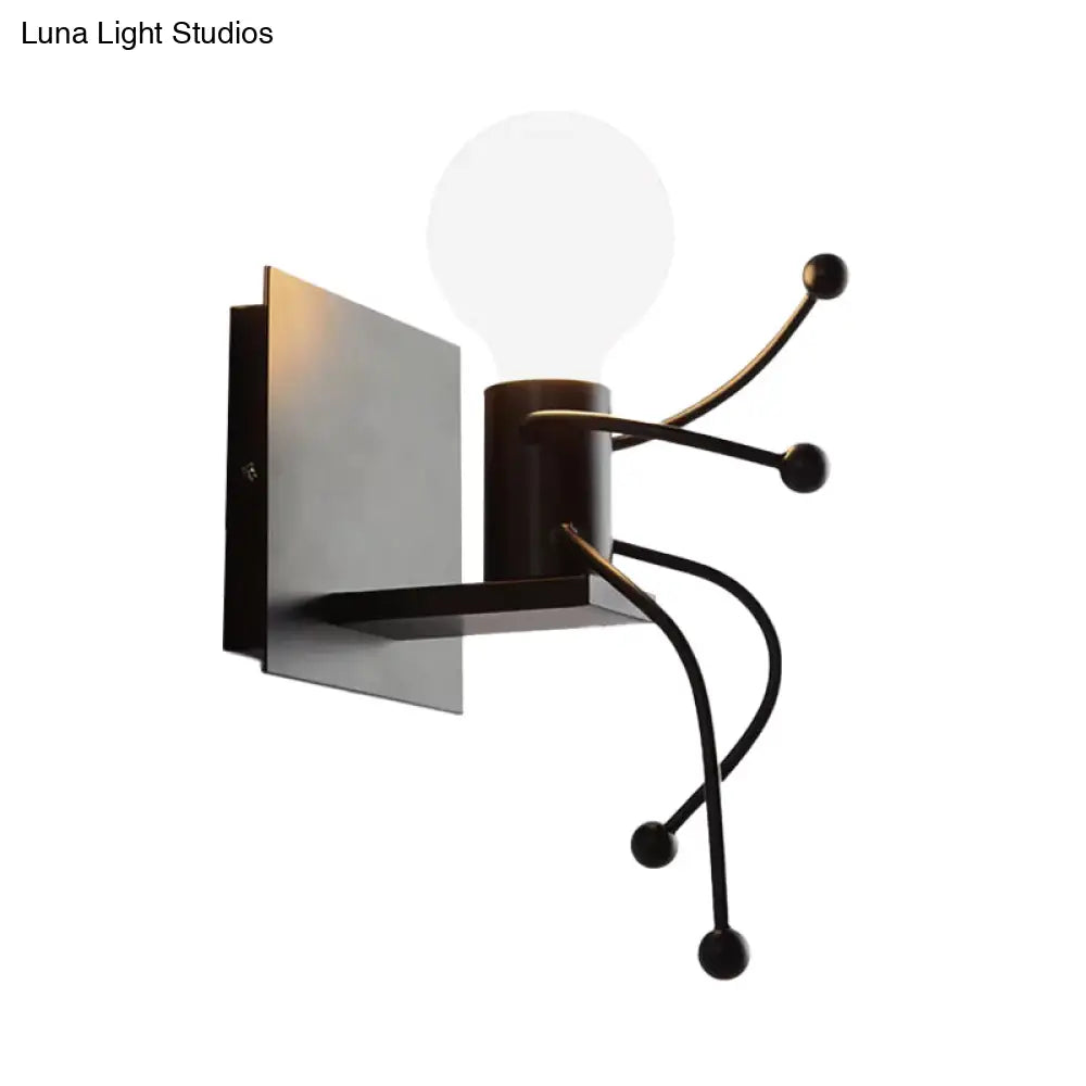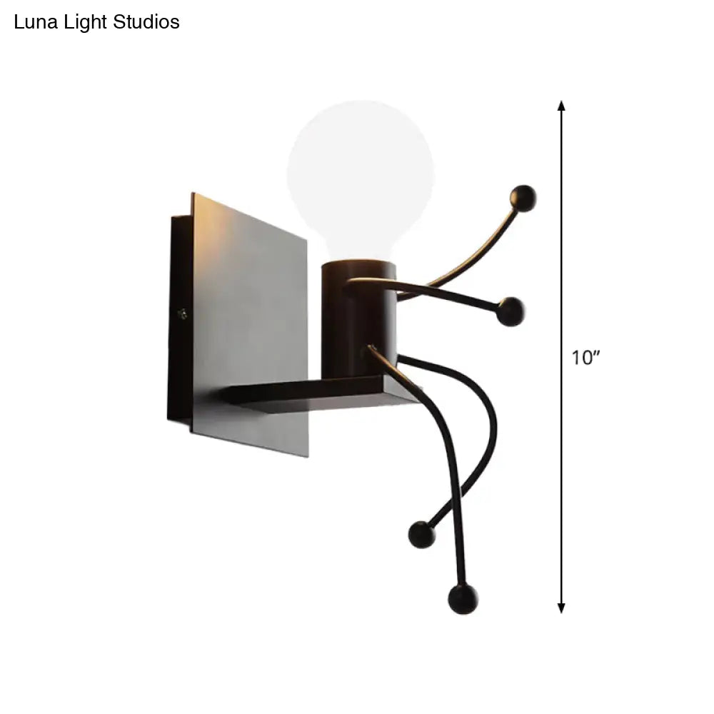 Aplique de pared Art Déco con forma de hombre pequeño, de metal: Bombilla 1/2, montaje en pared blanco para habitación infantil