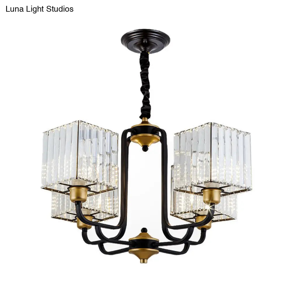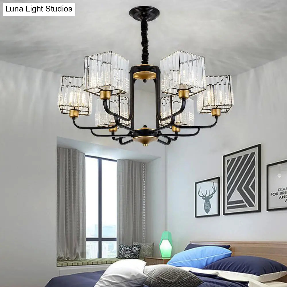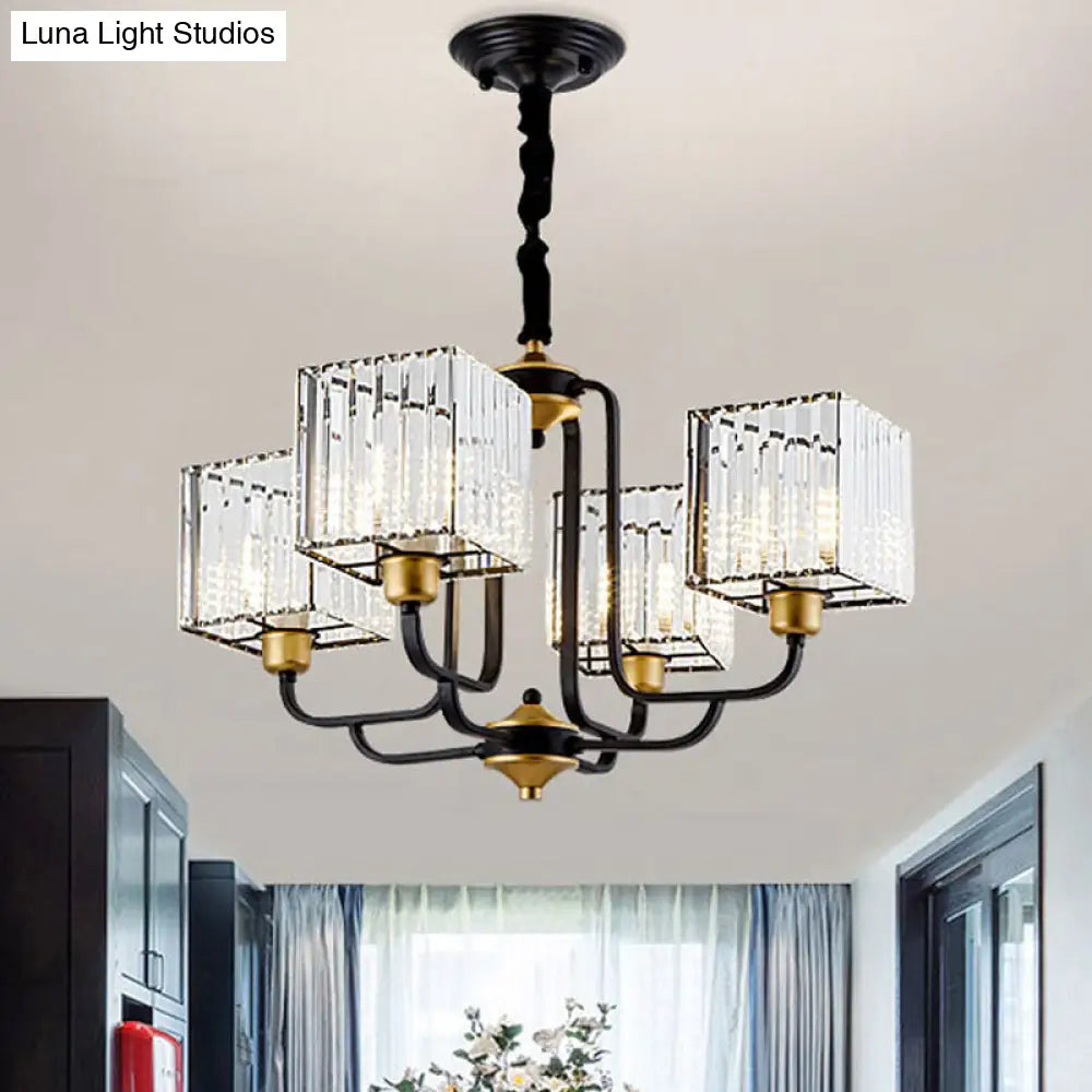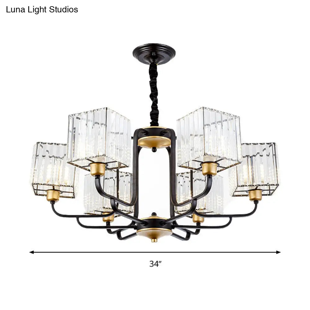 Lámpara de araña colgante moderna de cristal - Diseño cuadrado, 4/6/8 bombillas, negra - 66/86/91 cm de ancho