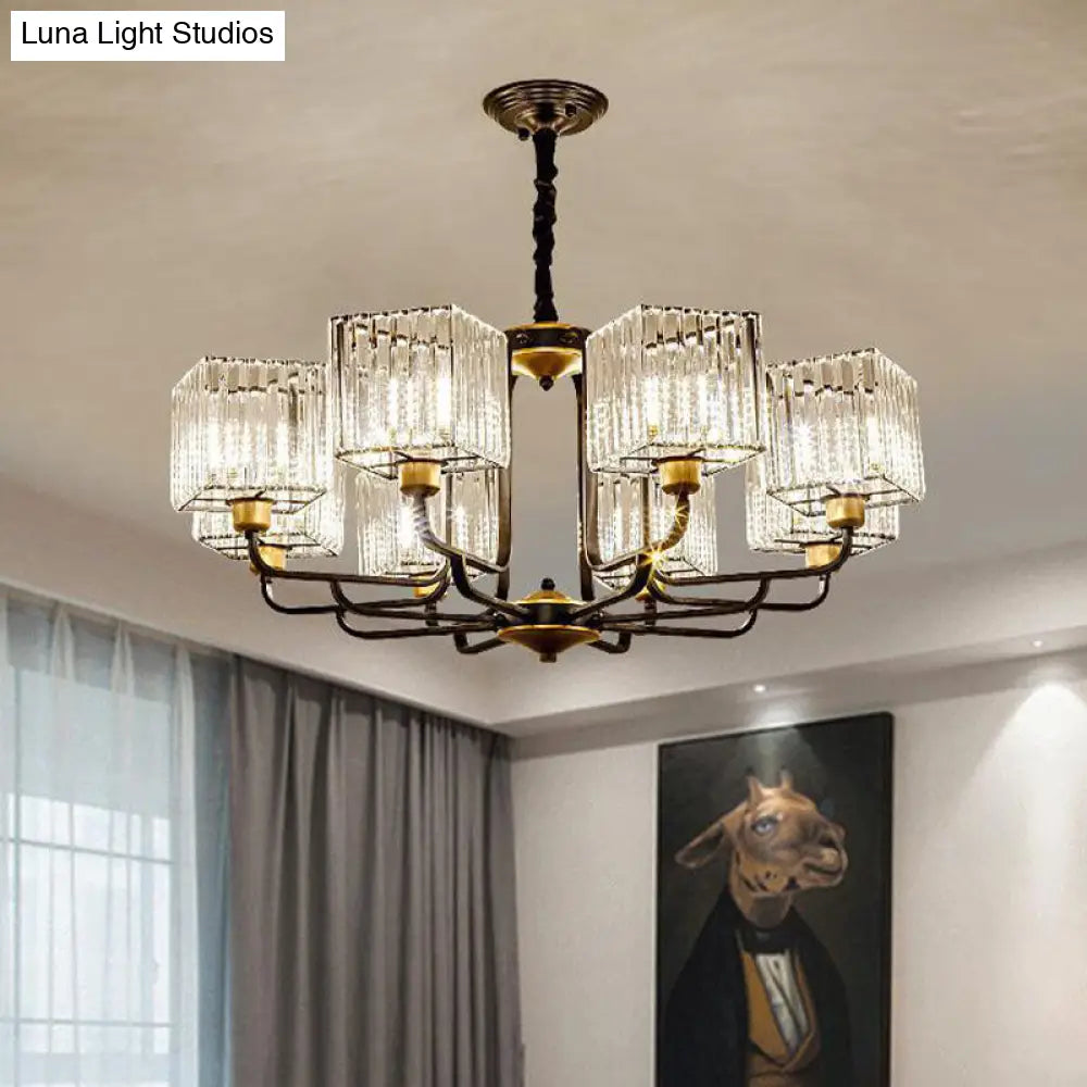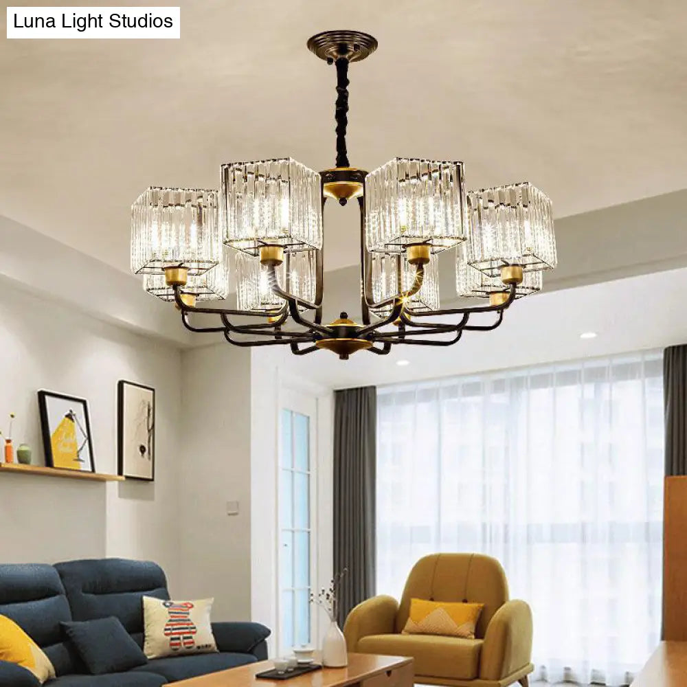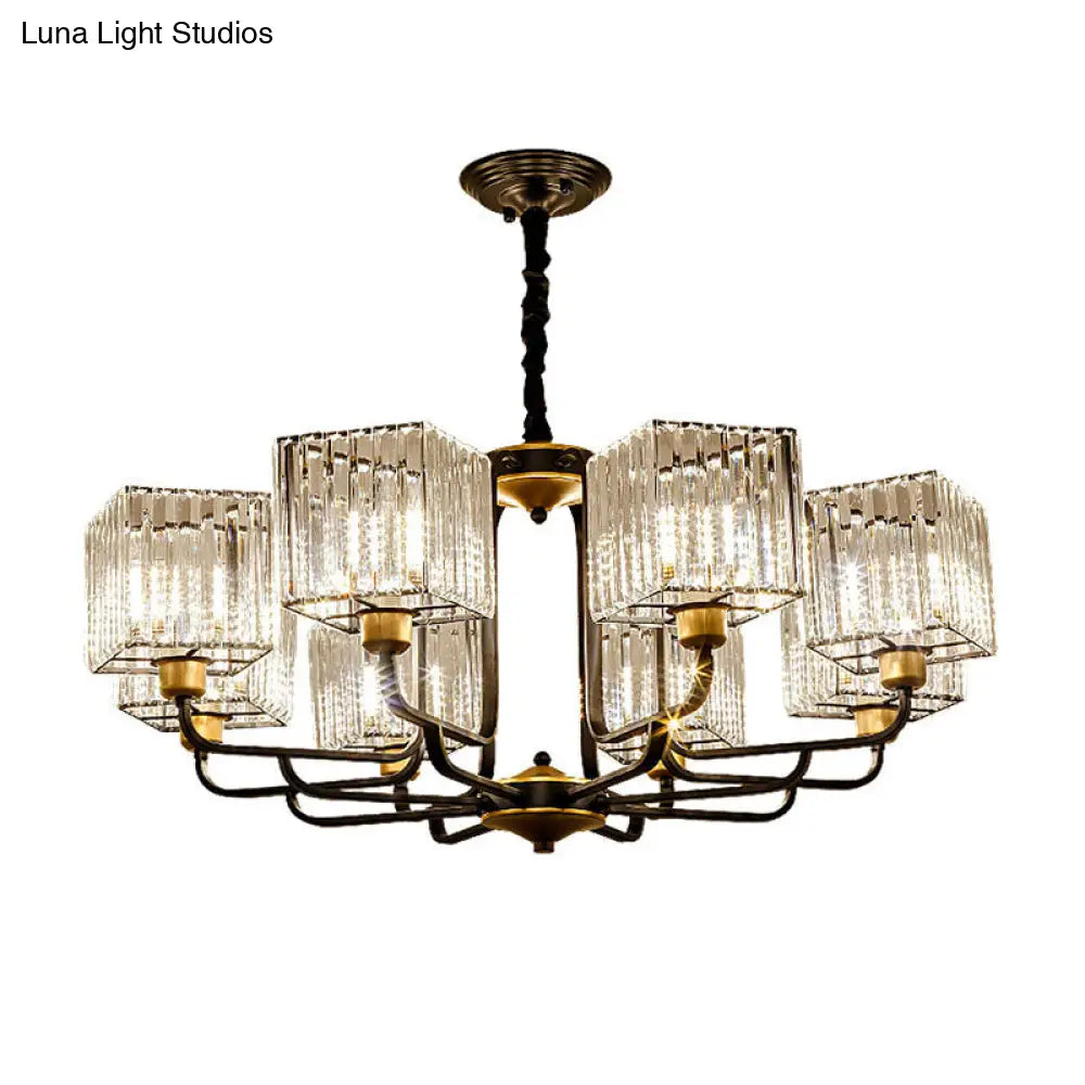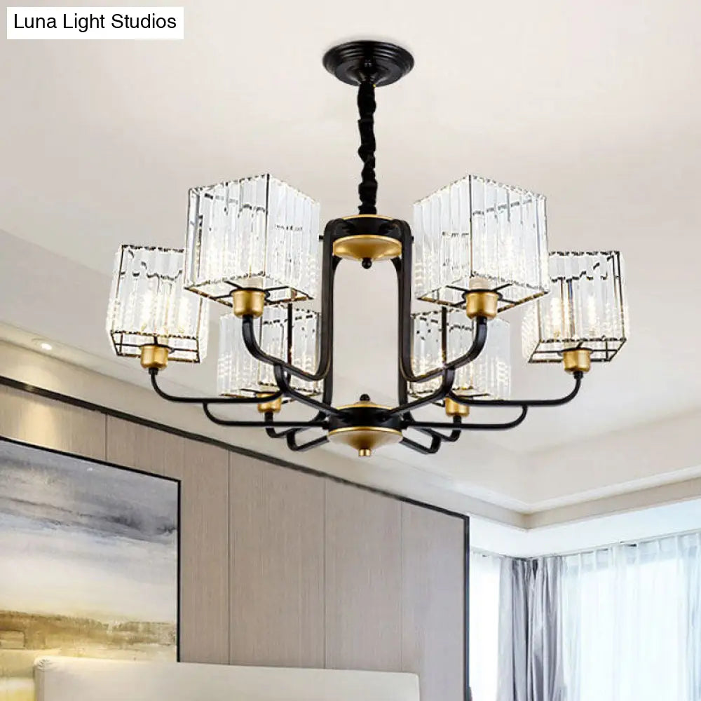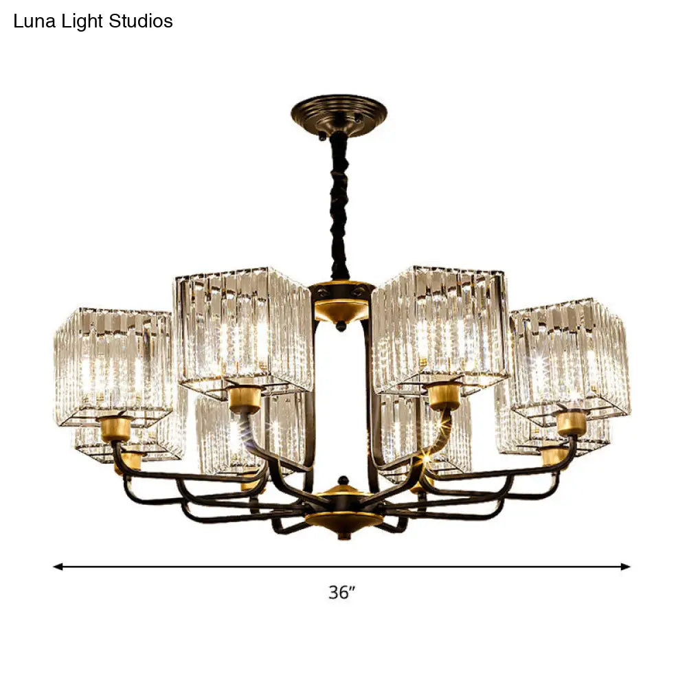Lámpara de araña colgante moderna de cristal - Diseño cuadrado, 4/6/8 bombillas, negra - 66/86/91 cm de ancho