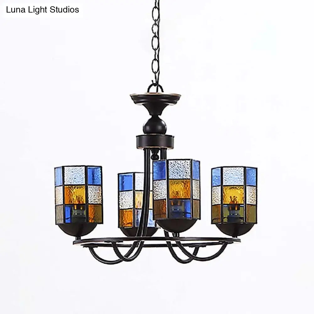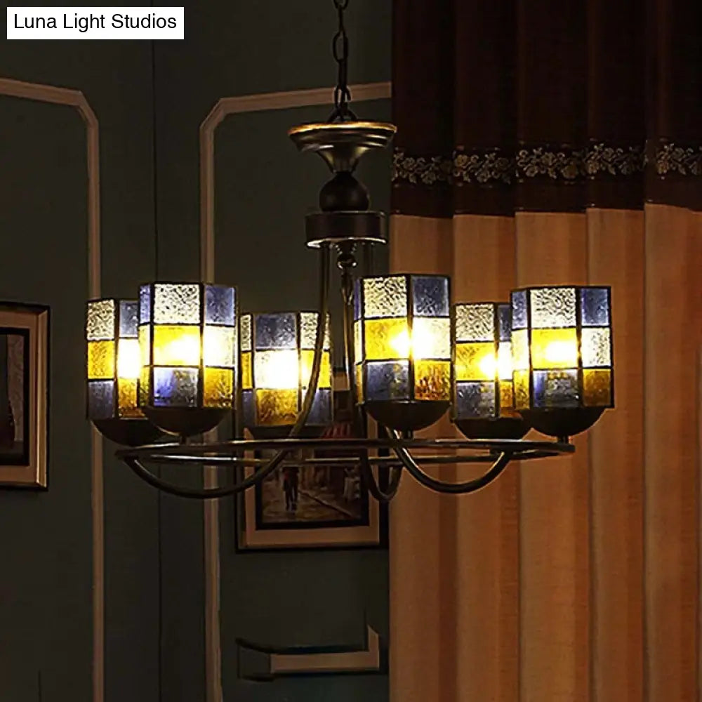 Lámpara colgante de araña de vitral azul - 4/6/8 luces cilíndricas para comedor mediterráneo