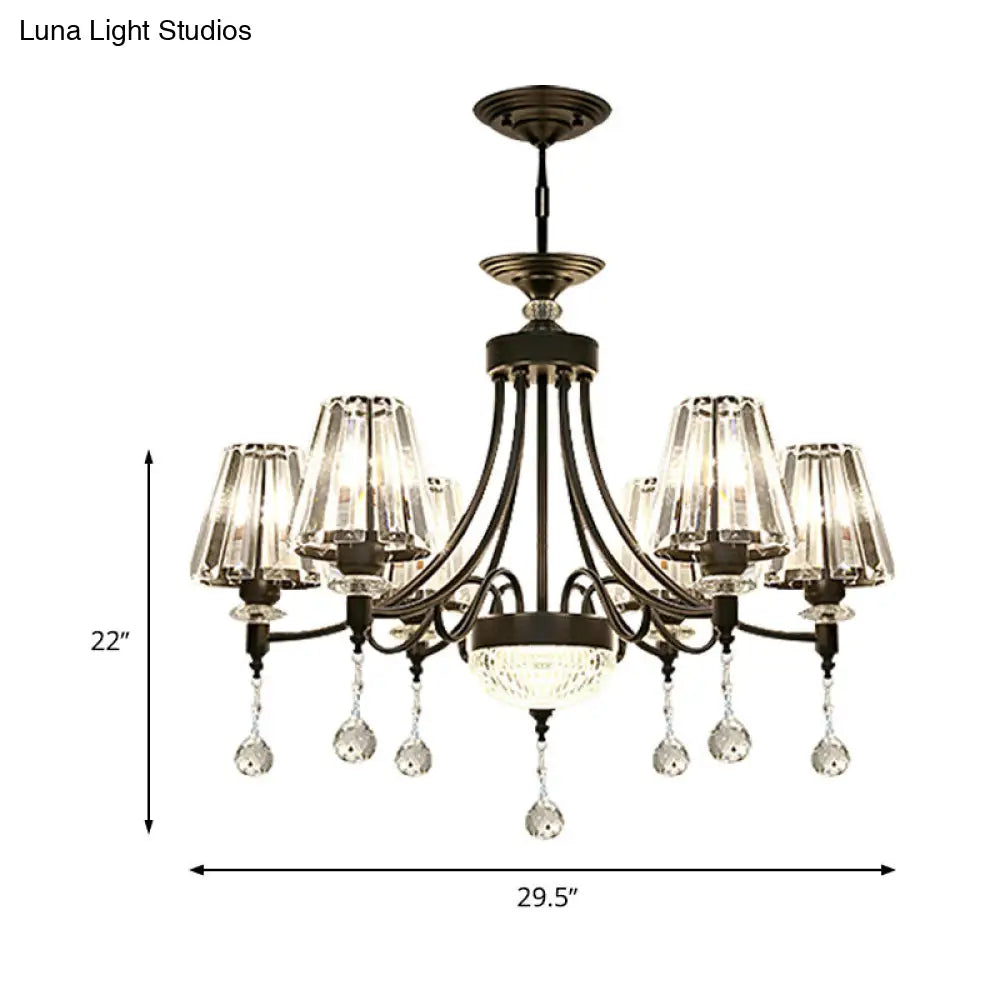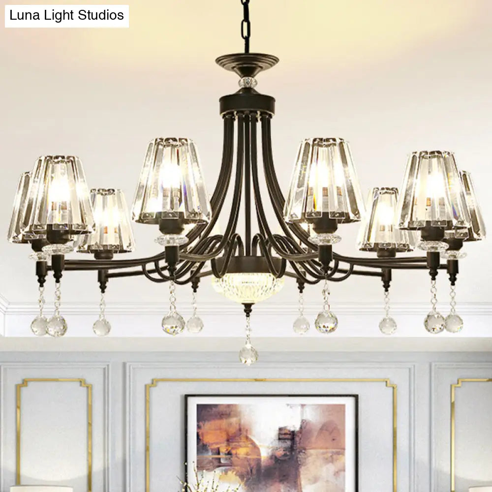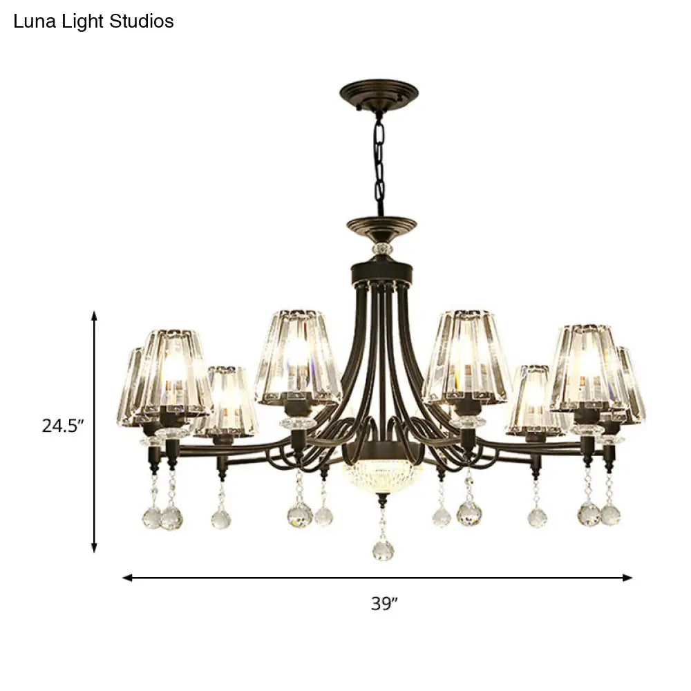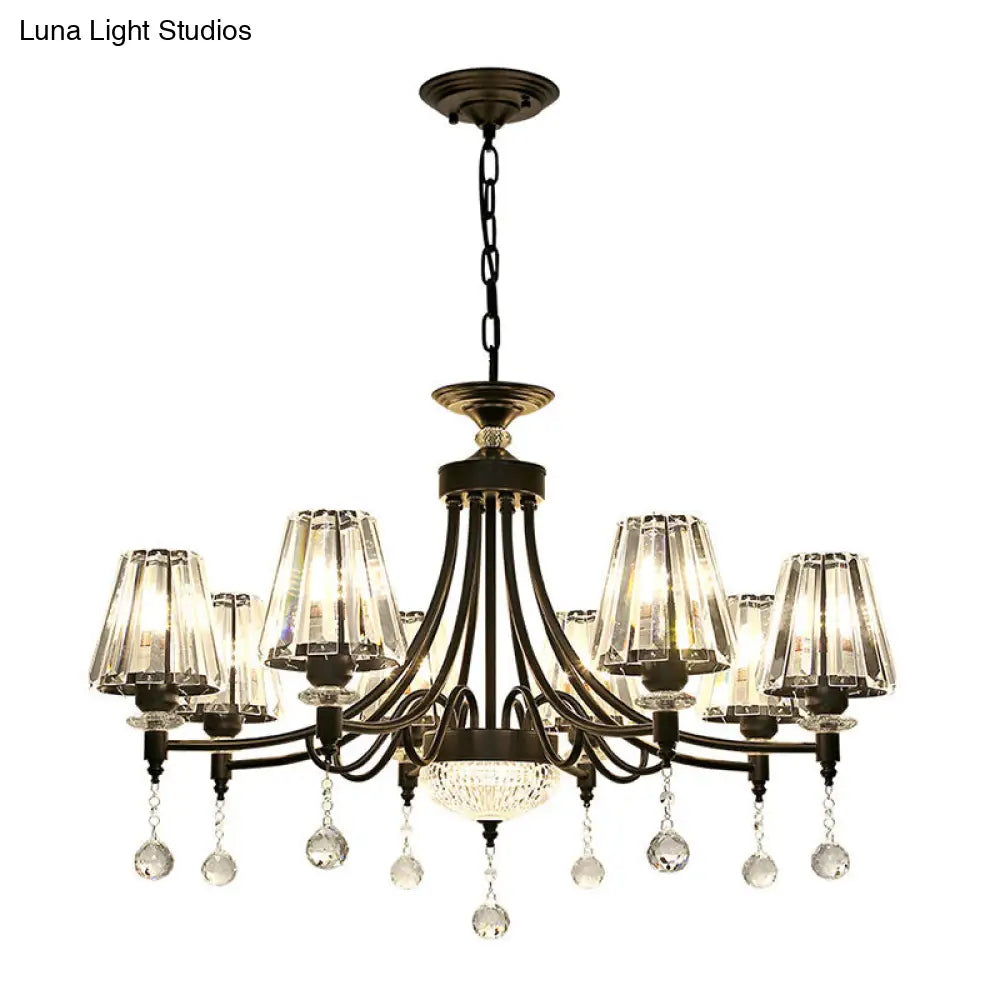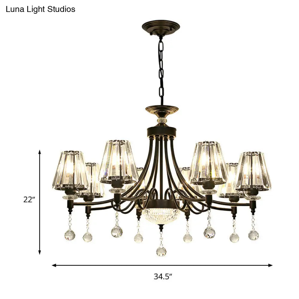 Lámpara de techo colgante cónica negra - Cristal tallado moderno - 3/6/8 cabezales - 23,5"/29,5"/34,5" de ancho