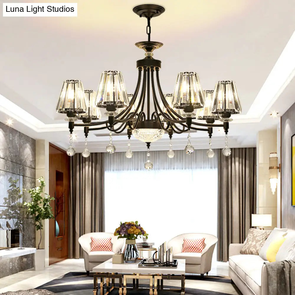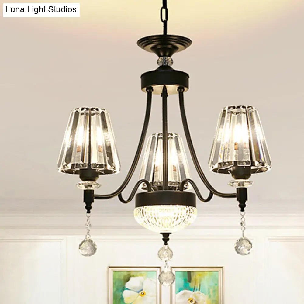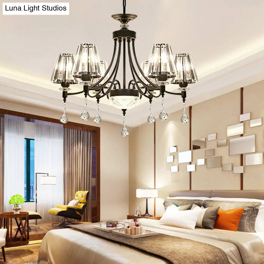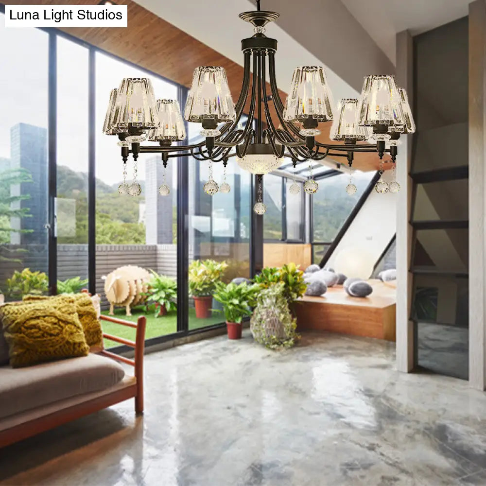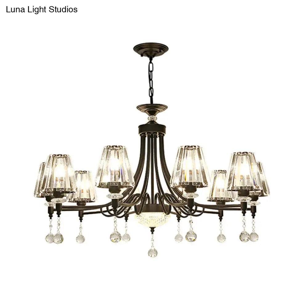 Lámpara de techo colgante cónica negra - Cristal tallado moderno - 3/6/8 cabezales - 23,5"/29,5"/34,5" de ancho