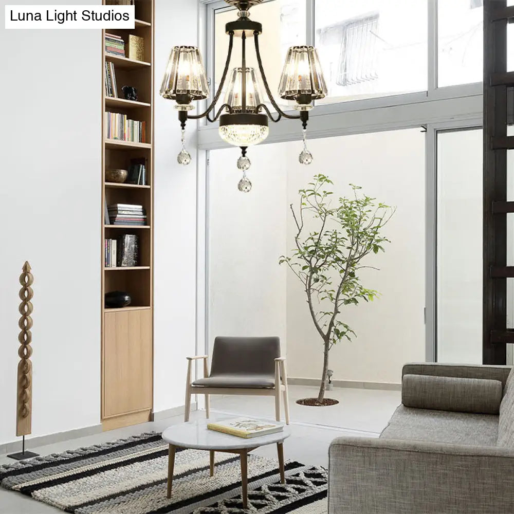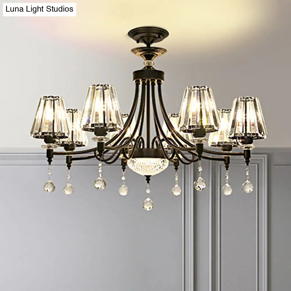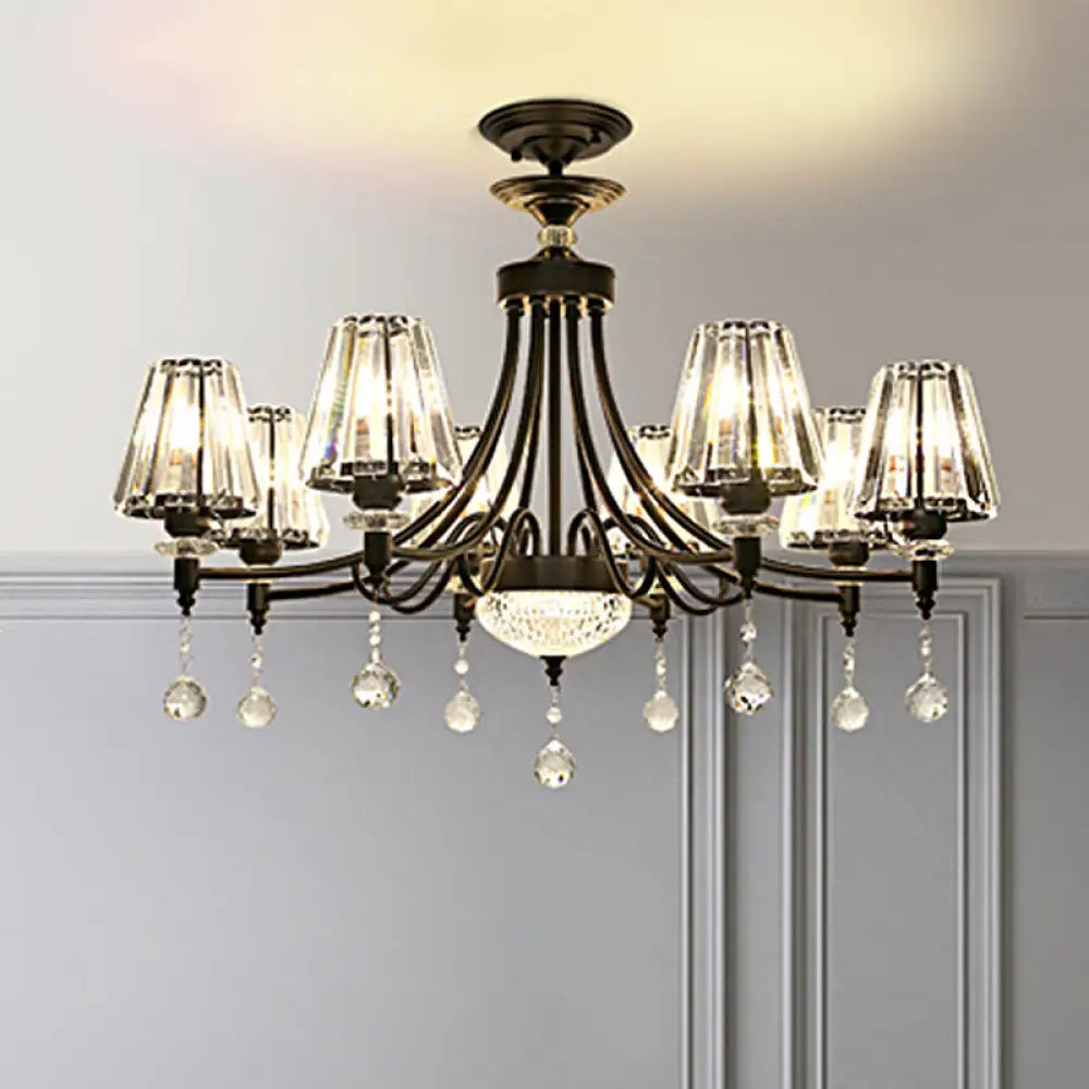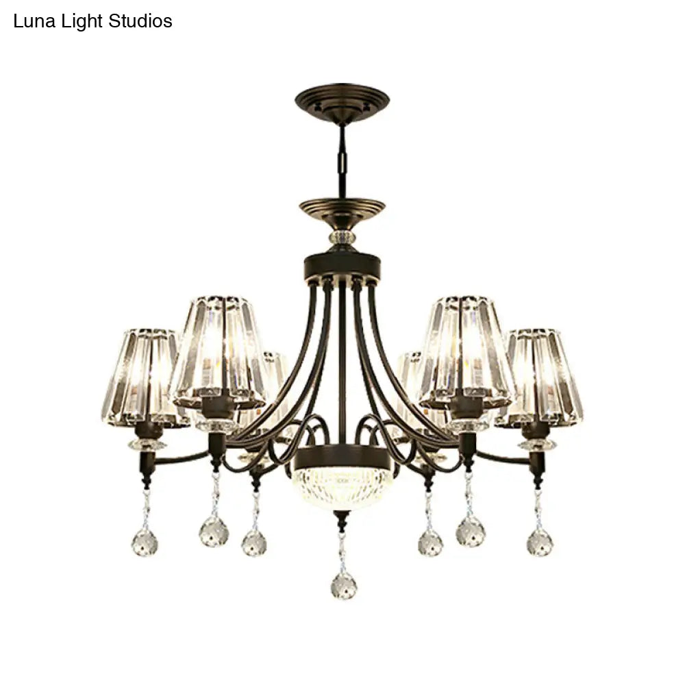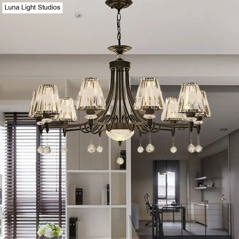 Lámpara de techo colgante cónica negra - Cristal tallado moderno - 3/6/8 cabezales - 23,5"/29,5"/34,5" de ancho