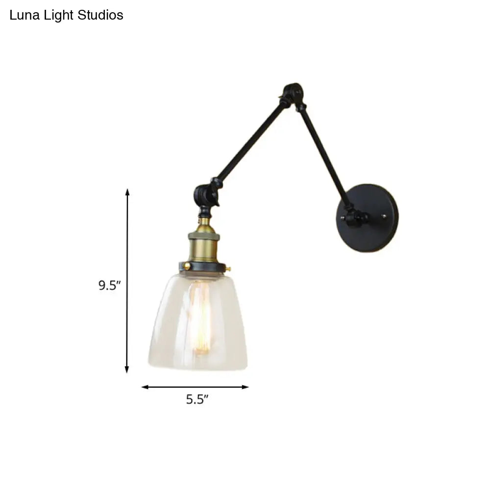 Lámpara de pared antigua de cristal transparente con brazo articulado - Diseño cónico, aplique de una sola bombilla para comedor