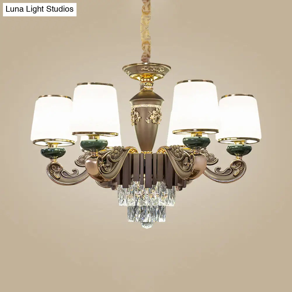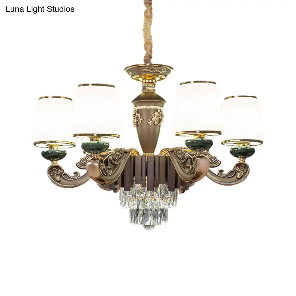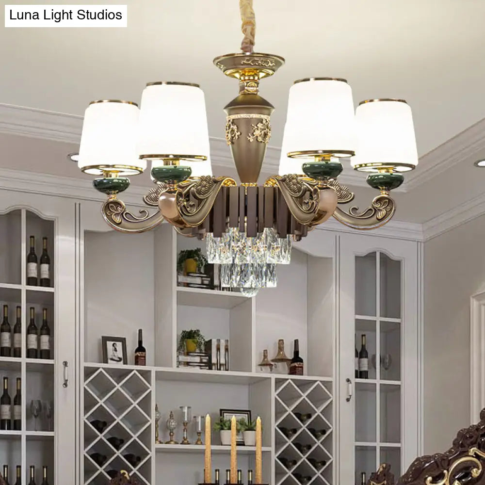 Lámpara de araña tradicional cónica de cristal opalino con 6 luces - Lámpara colgante marrón para comedor con inserto de cristal K9