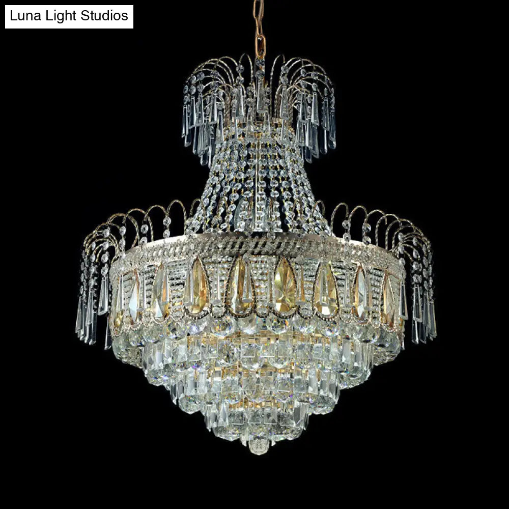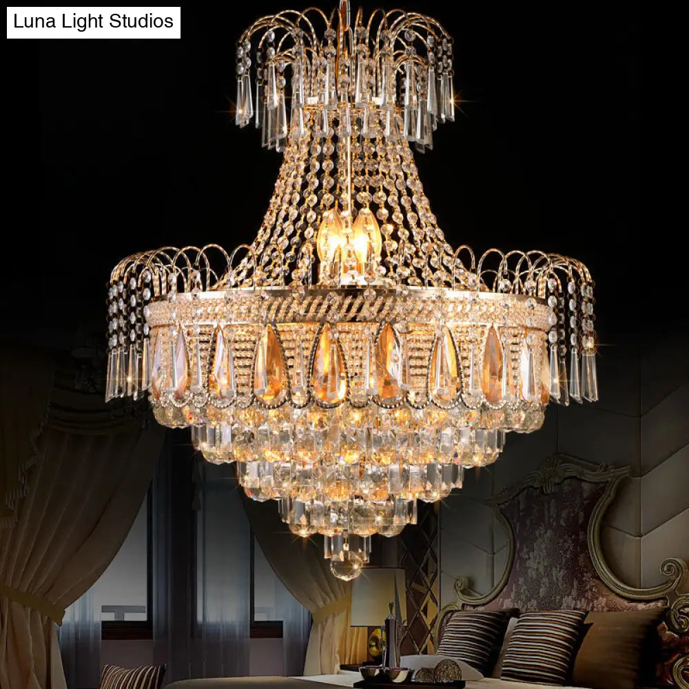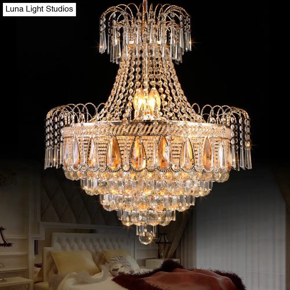 Lámpara de techo contemporánea dorada de varios niveles para dormitorio - Lámpara de techo de cristal de 10 luces