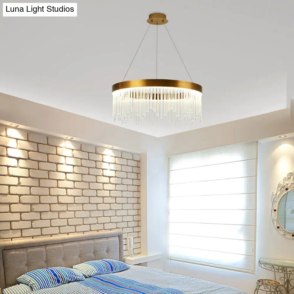 Lámpara colgante modernista de latón con LED y cristal - Lámpara de araña tubular, luz cálida/blanca, 40,6 cm/60 cm/80 cm de ancho
