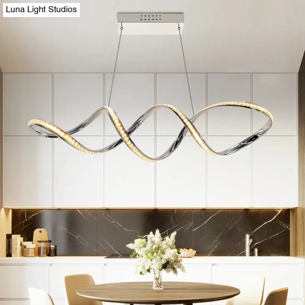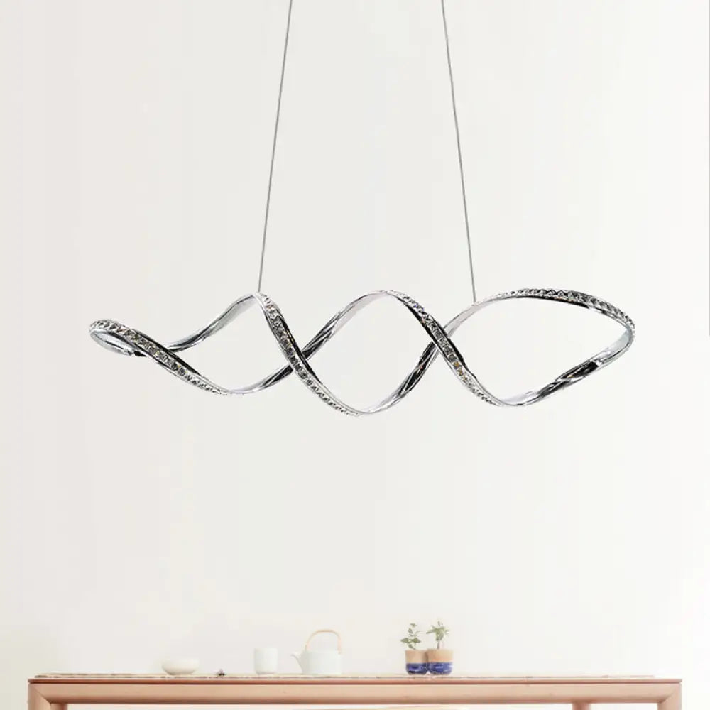 Lámpara de araña LED moderna de cristal - Lámpara colgante giratoria para comedor, acabado cromado, luz cálida/blanca