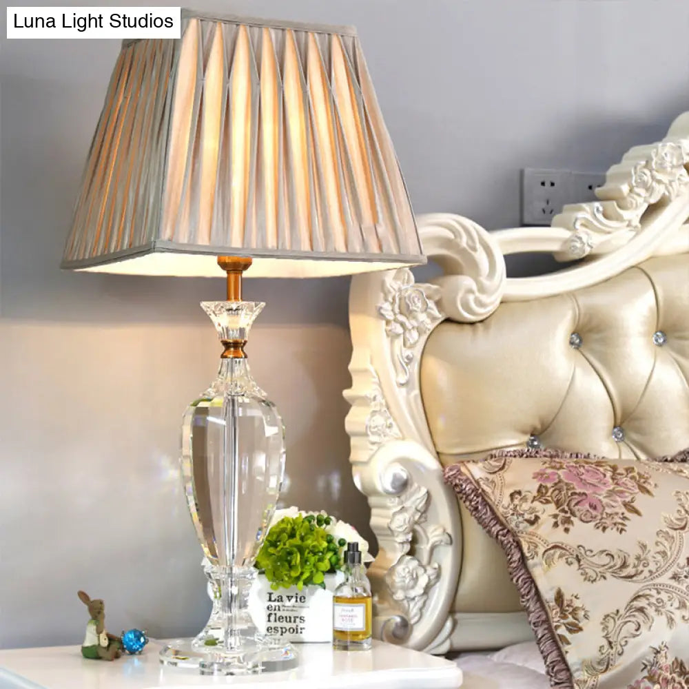 Lámpara de escritorio con forma de jarrón de cristal transparente - Lámpara de mesa nocturna contemporánea de 1 bombilla en color beige