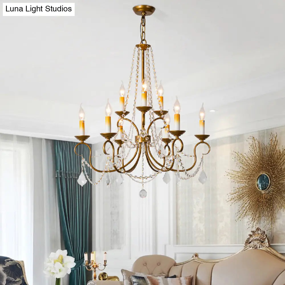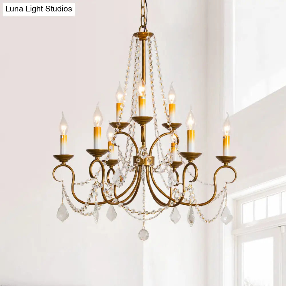 Lámpara colgante de araña vintage de latón - Hilo de cuentas de cristal - 6/9 luces - Bombilla desnuda