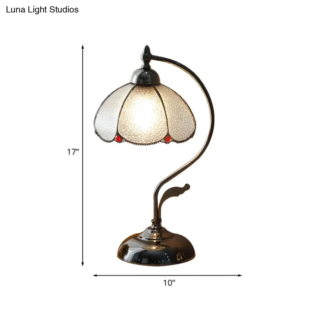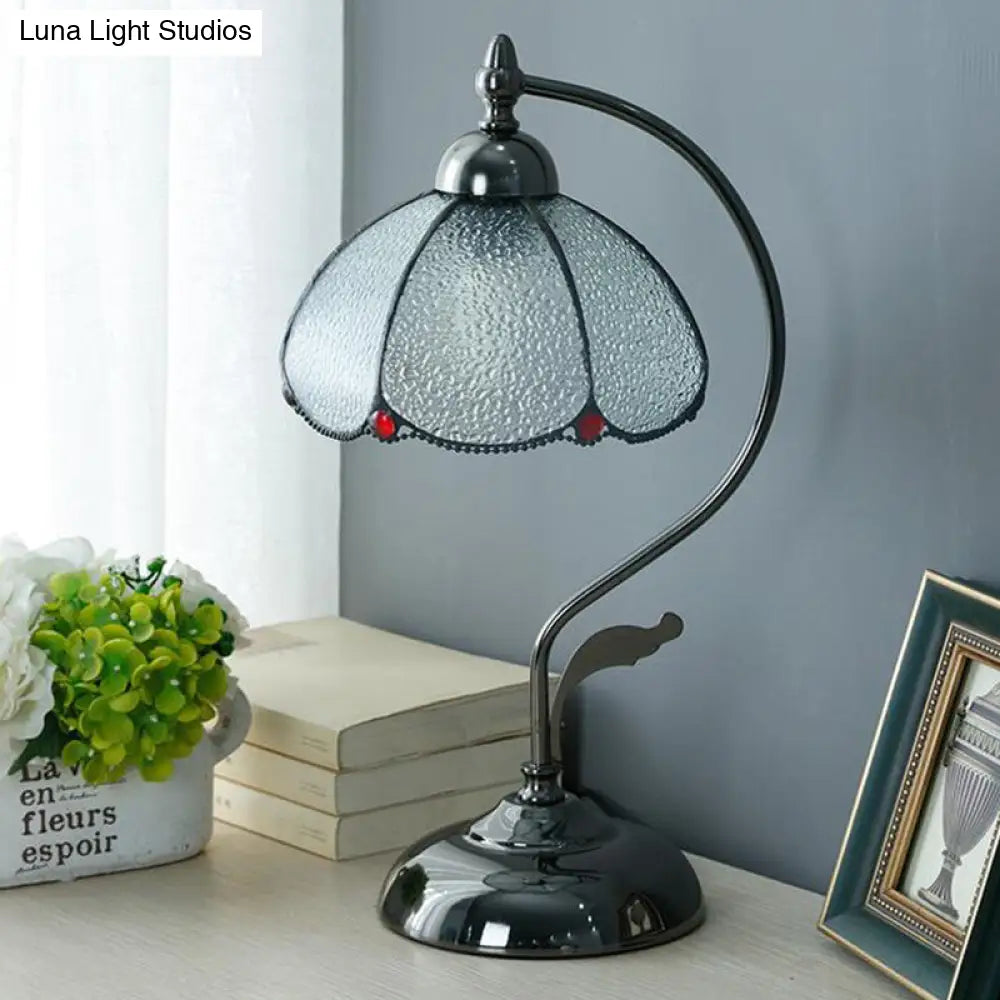 Lámpara de mesa Alkes - Vintage, tipo cúpula, con una bombilla, de cristal transparente y borde ondulado, color negro