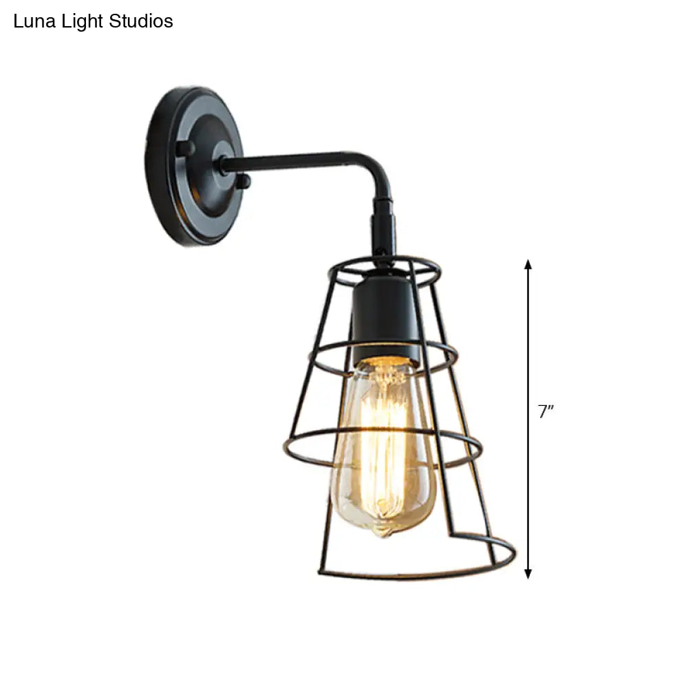 Aplique de pared cónico con brazo curvo - Lámpara de pared metálica de estilo vintage en blanco y negro.