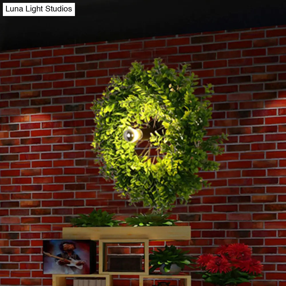 Aplique de pared antiguo de metal con diseño de rueda de carreta y luz LED, ideal para restaurantes. Color negro.