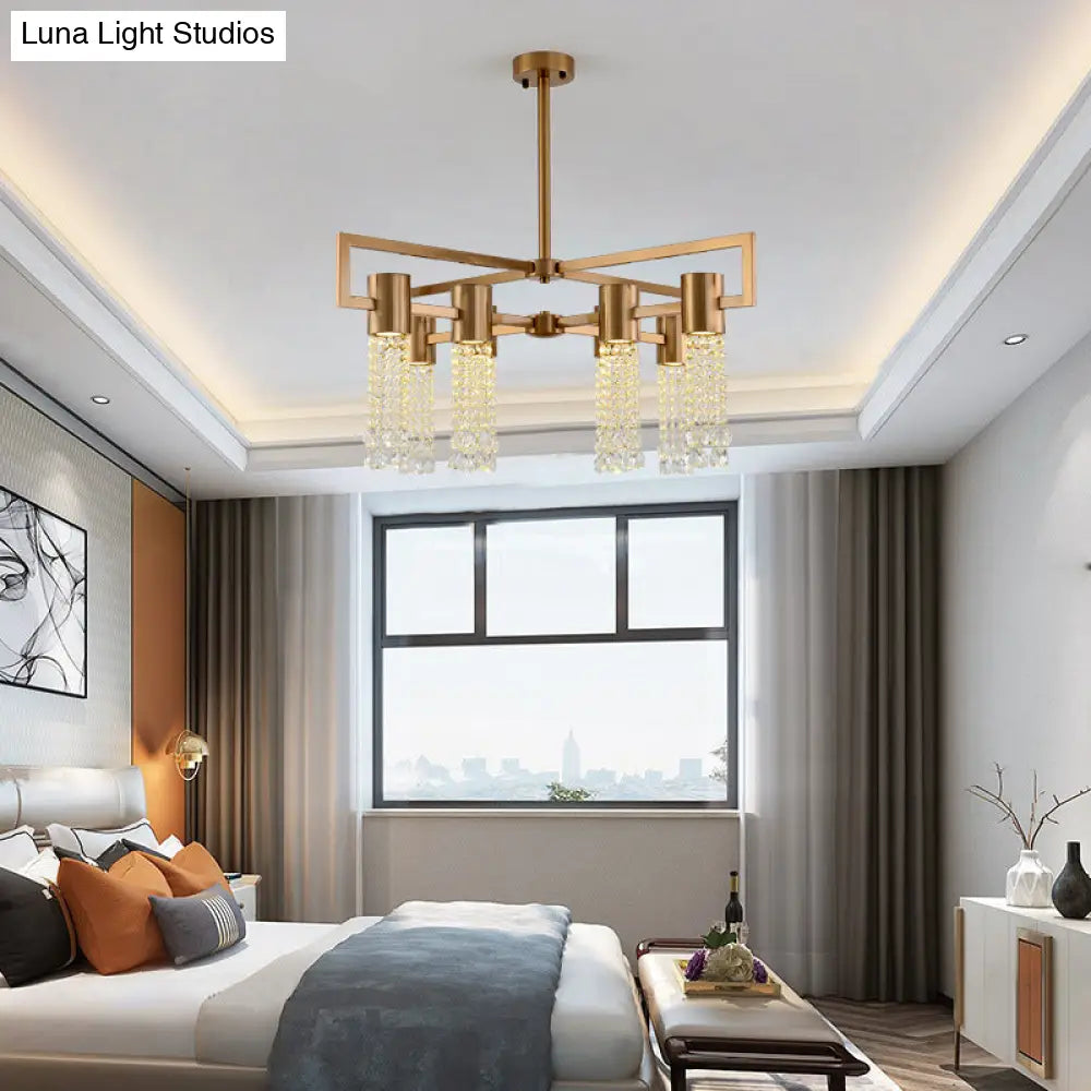 Lámpara de araña colgante moderna con 8/10 bombillas LED y cristal dorado para dormitorio